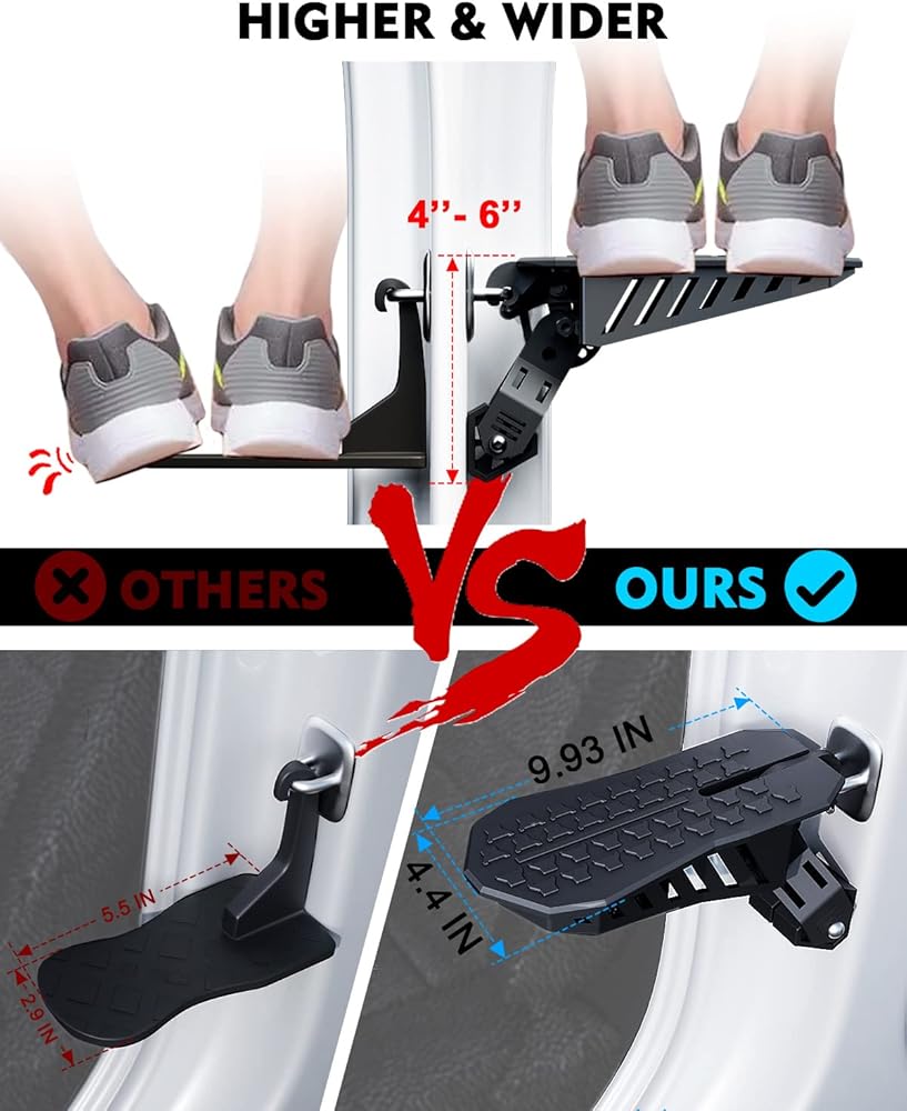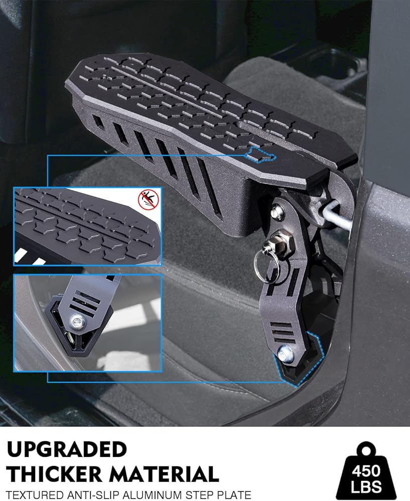 Xprite عتبة باب السيارة كبيرة جدًا، خطوة باب قابلة للطي مطورة ورف سقف عالي التحمل، سلم دواسة على مزلاج الباب متوافق مع معظم السيارات والشاحنات وسيارات الدفع الرباعي، أقصى حمولة 450 رطلاً
