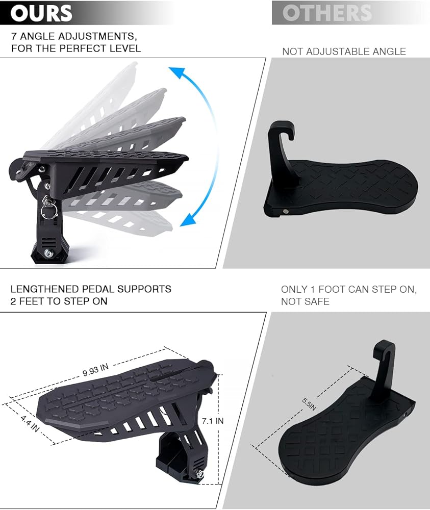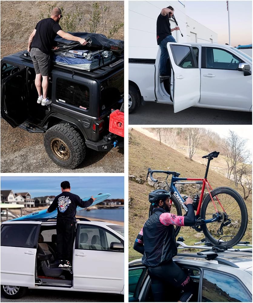 【سهولة الوصول إلى السقف】يمكن لدواسة السقف أن تحل محل سلمك، فقط قم بتعليقها على مزلاج الباب، مما يسمح لك بالوصول بسهولة إلى صندوق السقف الخاص بك، والدراجات المثبتة على السقف، وزوارق الكاياك، وحاملة التزلج وغسل سقف سيارتك.