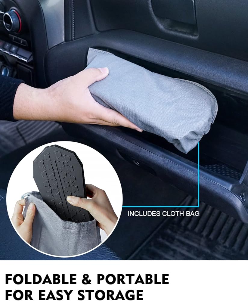 【قابلة للحمل والطي】الخطوة قابلة للطي، وصغيرة جدًا وخفيفة الوزن لسهولة طيها وتخزينها في حقيبة التخزين. لا تشغل مساحة وتتناسب تمامًا مع المساحة الصغيرة داخل السيارة.