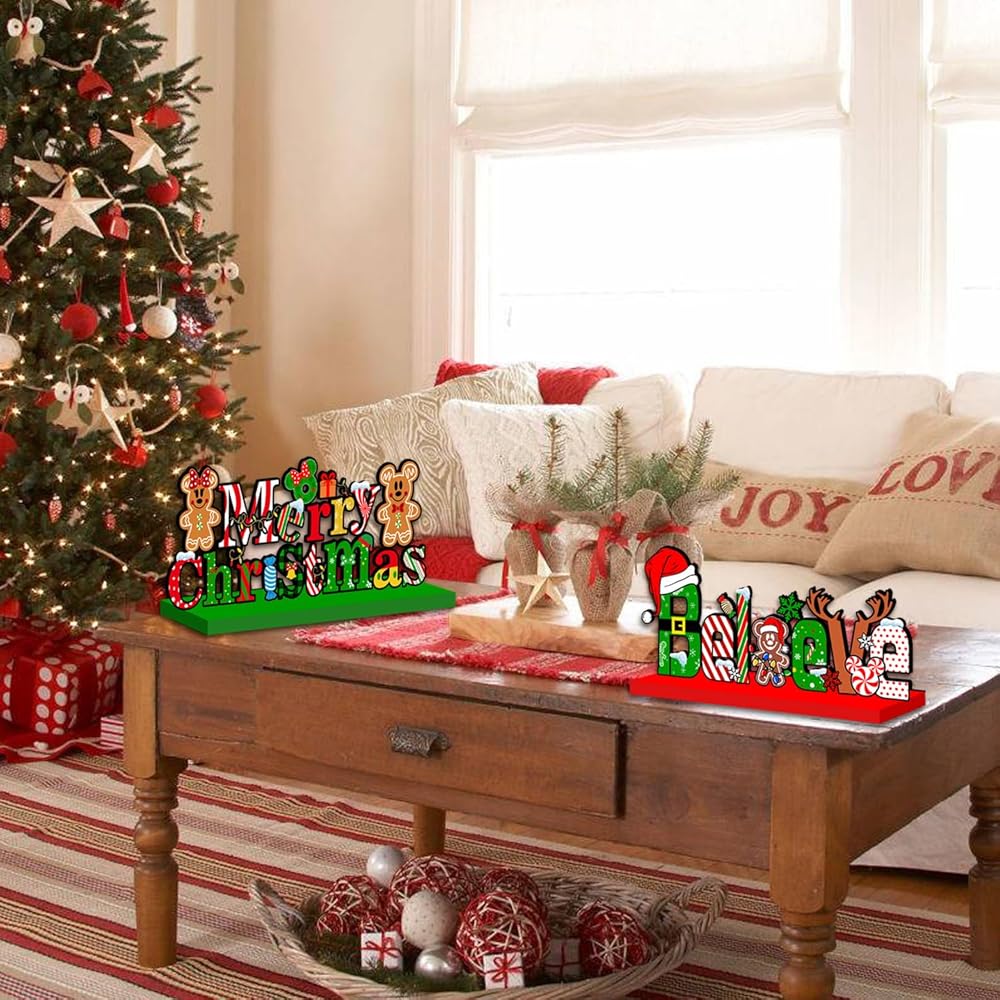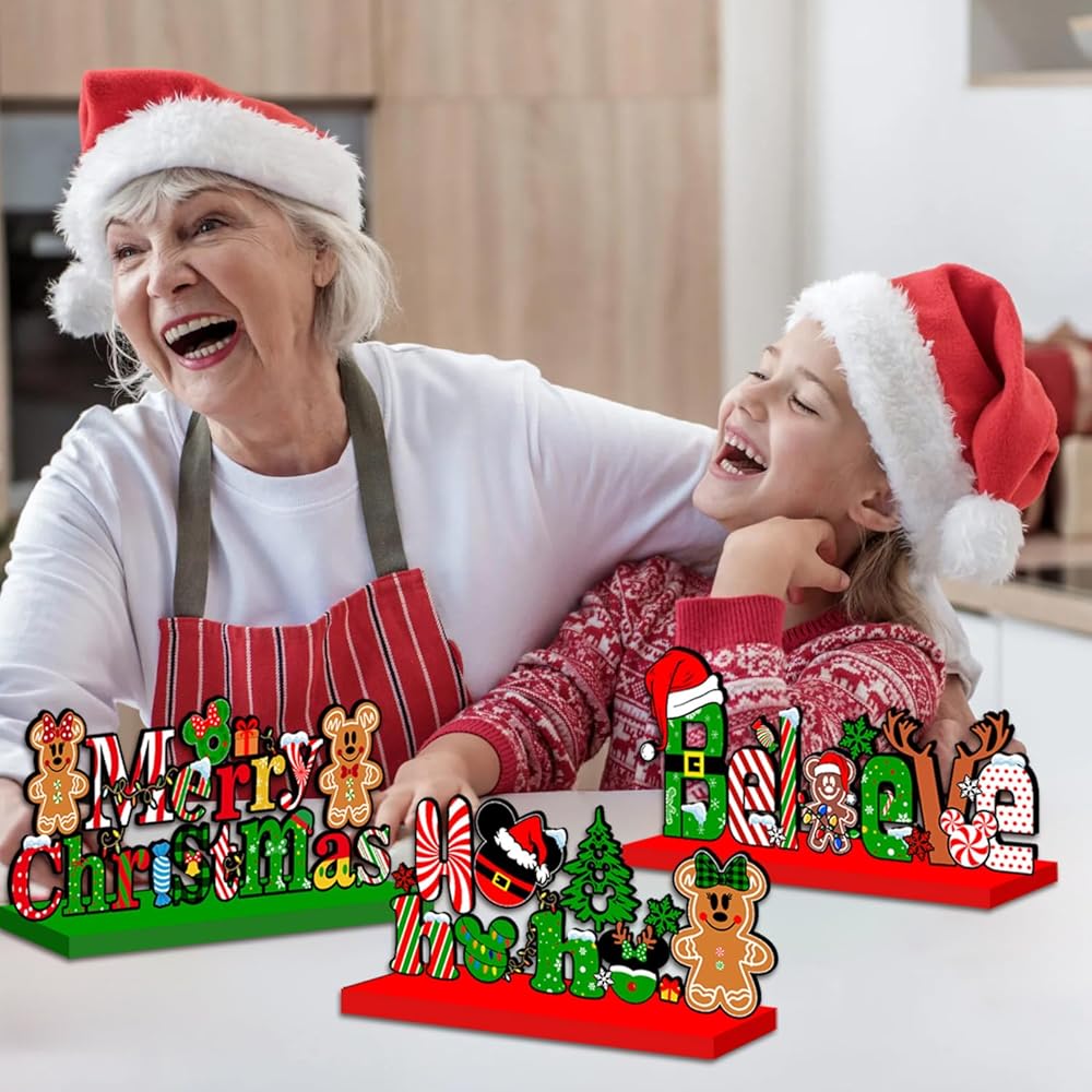Designed with gingerbread, Christmas tree and other elements, the Christmas decorations t able centerpiece wooden signs are exquisite, it will make your Christmas party unique and fashionable. You can give them as gifts to your relatives, family members and so on, or use it as photo props.