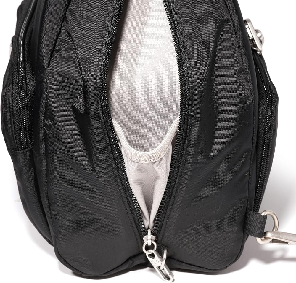 Love sling bags but need a larger option than our Daytripper? Wear this one as a crossbody, over your shoulder, or even as a backpack by unzipping the straps. With anti-theft protection, water- and cut-resistant materials, and a unique back wallet, the Securtex® Anti-Theft Vacation Convertible Sling is a bag you'll keep coming back to.