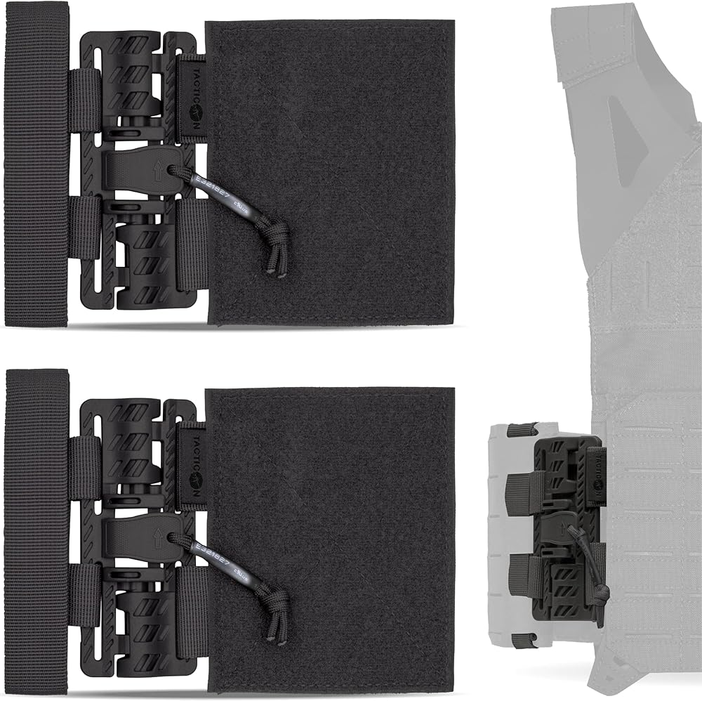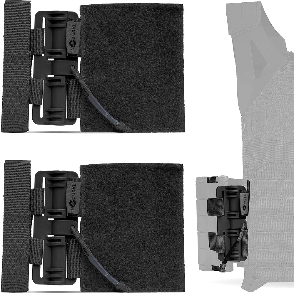 Tacticon's Quick Release Cummerbund Conversion Attachment is a quick and cost-effective upgrade to your existing vest. The Velcro portion of your cummerbund folds inward to expose the leading edge of your MOLLE attachment. The MOLLE portion of the quick attach mechanism is then attached and includes a wrap around strap for extra securement. The second connecting piece will rest in place secured by Velcro under your front flap. The result is a modernized QD carrier eliminating the hard tearing of Velcro, noise and time consumption while donning your vest. Simply connect the QD mechanisms for a secure fit. To disconnect, pull down and out on the quick release tabs.