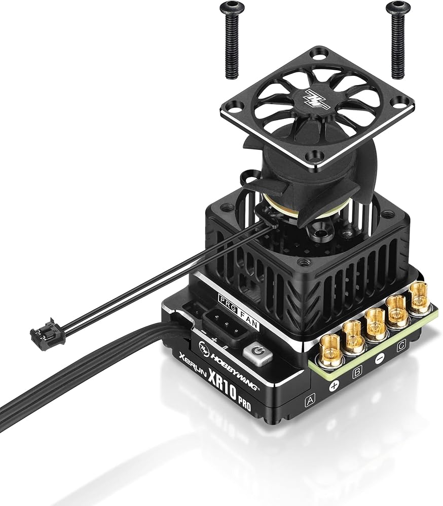 Congratulations and thank you for your trust in Hobbywing product. By purchasing the XERUN XR10 Pro G2S, you have chosen a high performance sensored brushless electronic speed controller! This speed controller is equipped with high-tech features to enhance your experience with Hobbywing brushless power systems. Please take your time and read the following instructions carefully before you start using your speed control. We have the right to modify our product design, appearance, features and usage requirements without Features: 10 select-to-use profiles applicable to all 1/10th RC car racing. Internal electronic key switch for long service life, high reliability; and the external switch port for connecting an external switch (Not included in the packaging box, purchase separately) is applicable to different situations. A separate PRG/FAN port is able to power an external fan to maximize cooling performance or connect an LCD program box or OTA Programmer to the ESC. Variable frequency regulation of PWM & brake frequencies allows users to precisely regulate the driving & braking forces (of the motors). Softening function (HOBBYWING-initiated) for milder or wilder driving control and better driving efficiency. Multiple protections: low-voltage cutoff protection, ESC and motor thermal protection, and fail-safe (throttle signal loss protection), reverse polarity protection (the external standard cap pack will still be damaged if battery reversal occurs). Data logging for recording the maximum ESC/motor temperature, motor speed/RPM, and others in real-time. Firmware upgrade via Hobbywing multifunction LCD program box or OTA Programmer (item sold separately). * The external standard cap pack will still be damaged if battery reversal occurs. For full protection, recommend using HOBBYWING SMT-MLCC capacitor banks (purchase separately)