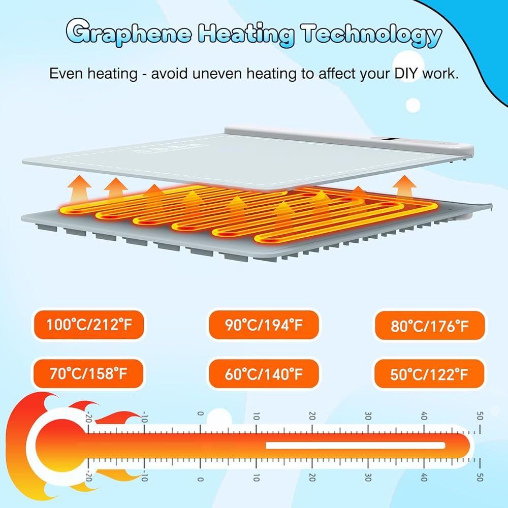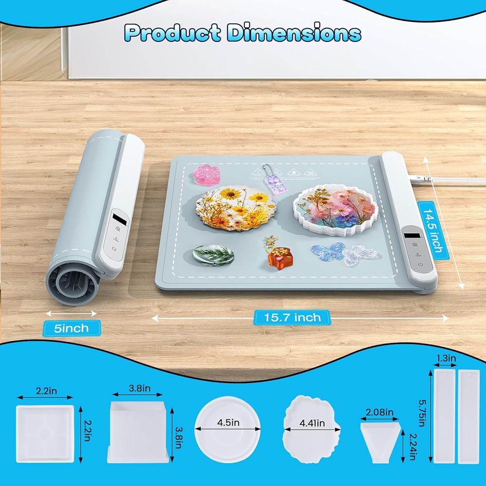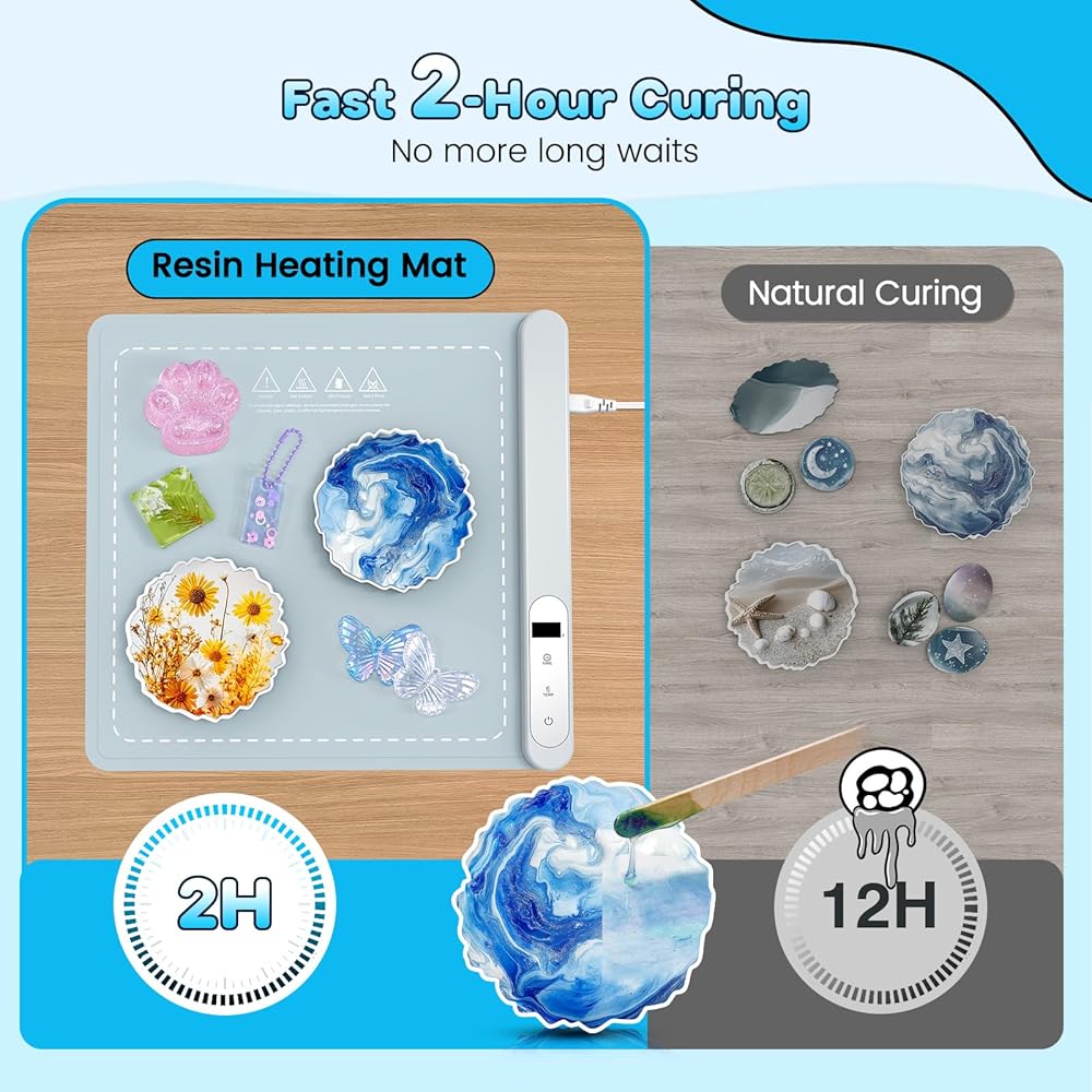 معالجة سريعة مع كفاءة توفير الوقت: أكمل مشاريع الراتنج الخاصة بك خلال ساعتين فقط باستخدام بساط التسخين القوي بقدرة 500 واط. يضمن المؤقت المدمج أوقات معالجة دقيقة، مما يتيح لك العمل على مشاريع متعددة في وقت واحد
