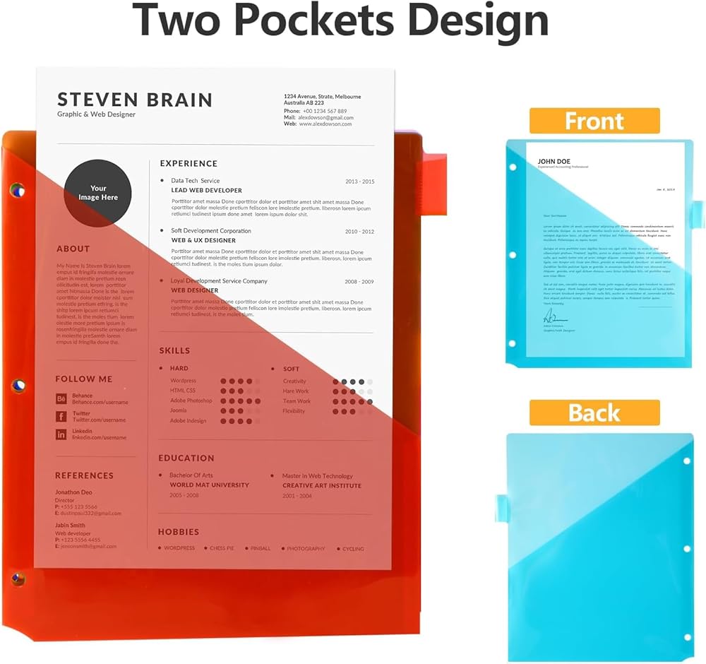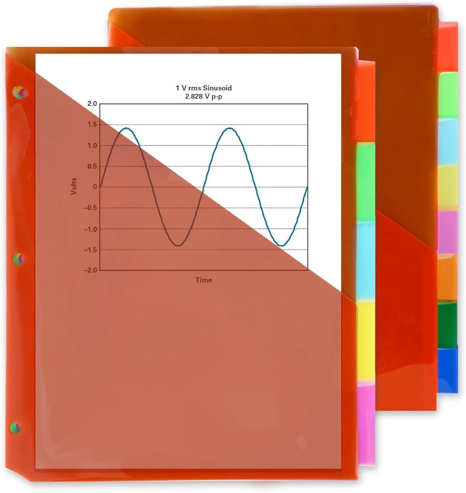Made of durable plastic, designed to fit standard 8.5 x 11 inch (21.6 x 27.9 cm) letter-size 3-ring binders.