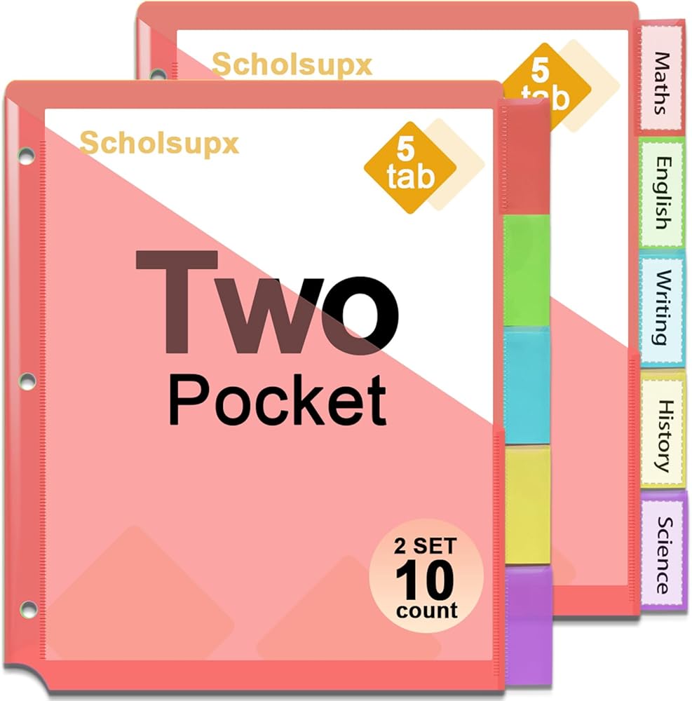 Organize your binders with ease using these 5-tab binder dividers with front pockets.