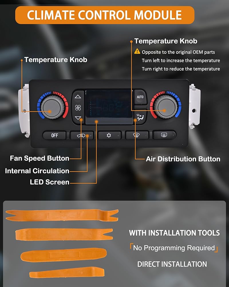 ملاحظة: تبدو وحدة التحكم في مناخ سخان مكيف الهواء هذه مختلفة عن الوحدة الأصلية ولكنها لها نفس الوظائف وتناسب فقط بعض موديلات جي إم سي وتشيفي 2003 2004