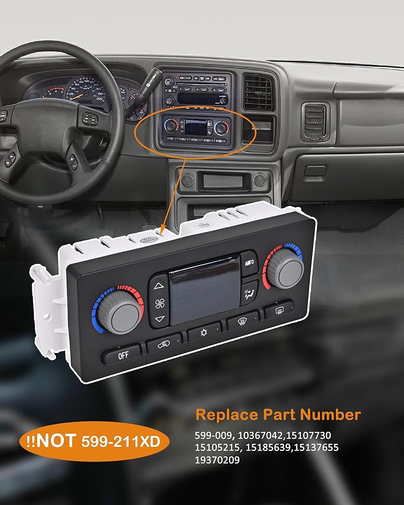 استبدال رقم الجزء: 599-009، 10367042، 15107730، 15105215، 15185639، 15137655، 19370209!!!ليس 599-211XD!! يرجى التأكد بعناية من رقم جزء OEM قبل الشراء واستخدام موقع أمازون المؤكد للتأكد من أن وحدة التحكم في المناخ تناسب سيارتك