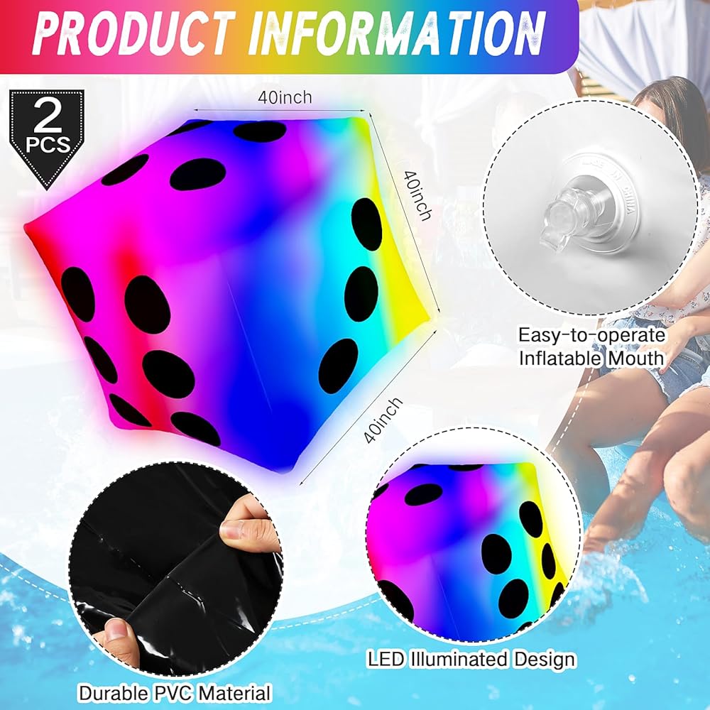 2 قطعة 40 بوصة تضيء النرد العملاق القابل للنفخ LED النرد الكبير ضربة النرد العملاق تعويم ألعاب النرد الكبيرة للداخلية والخارجية في الحديقة الواسعة لعبة الكازينو موضوع لودو بول الهالوين ديكور حفلات عيد الميلاد