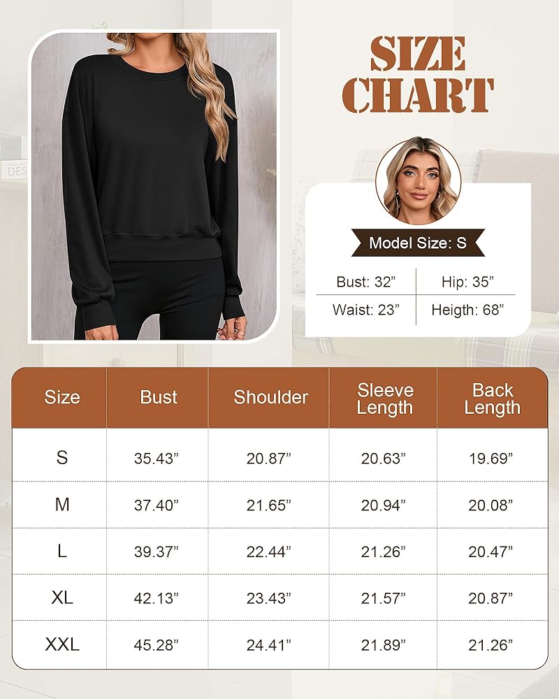 The women's long sleeve crop shirts are available in different sizes: Extra Small, Small, Medium, Large, X Large. Please refer to the size chart before purchasing and choose the size that suits you