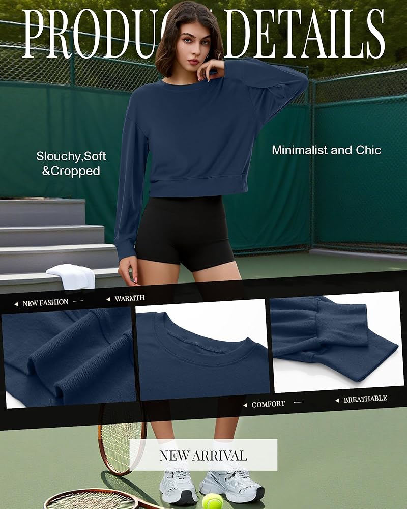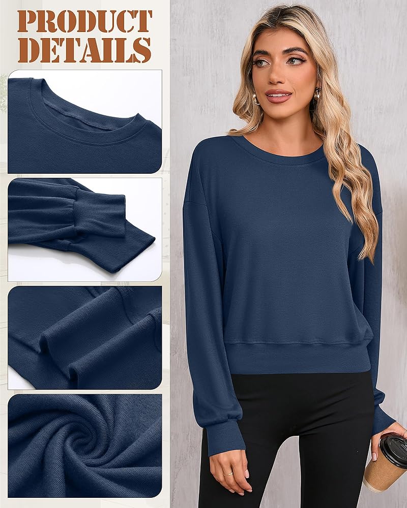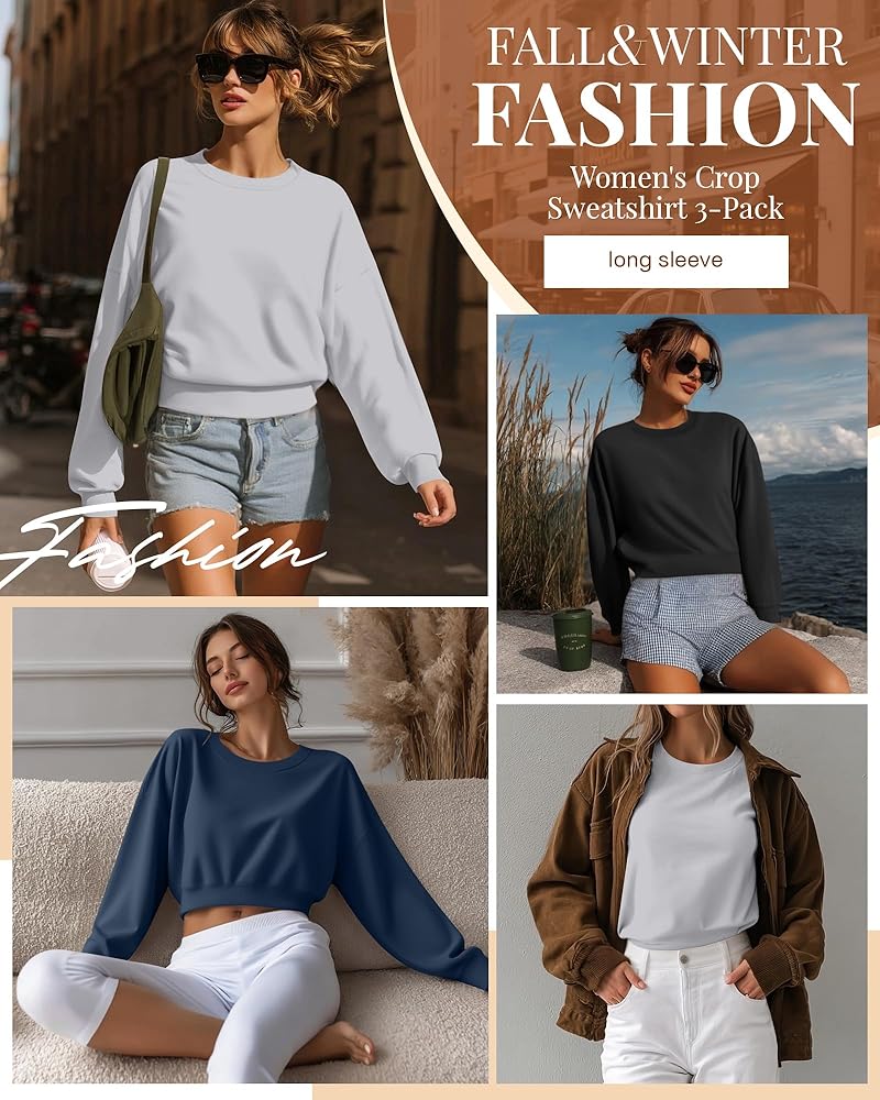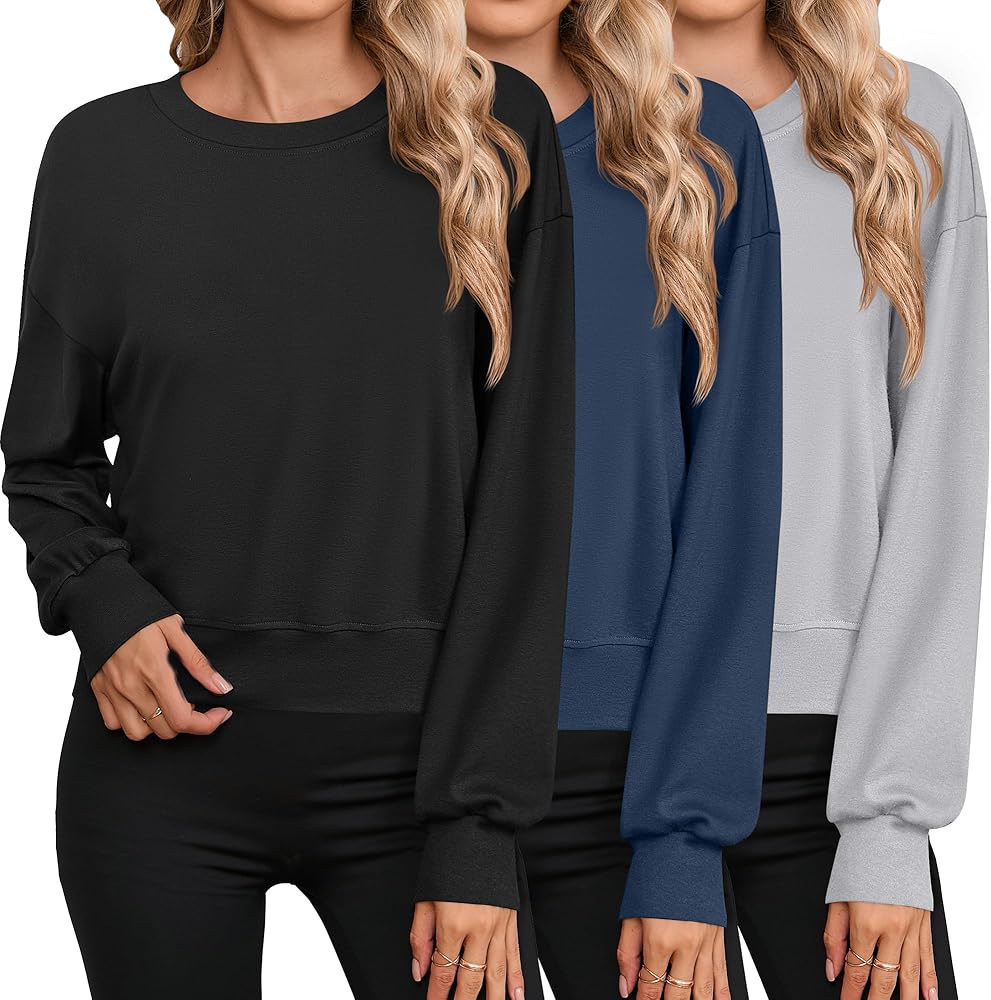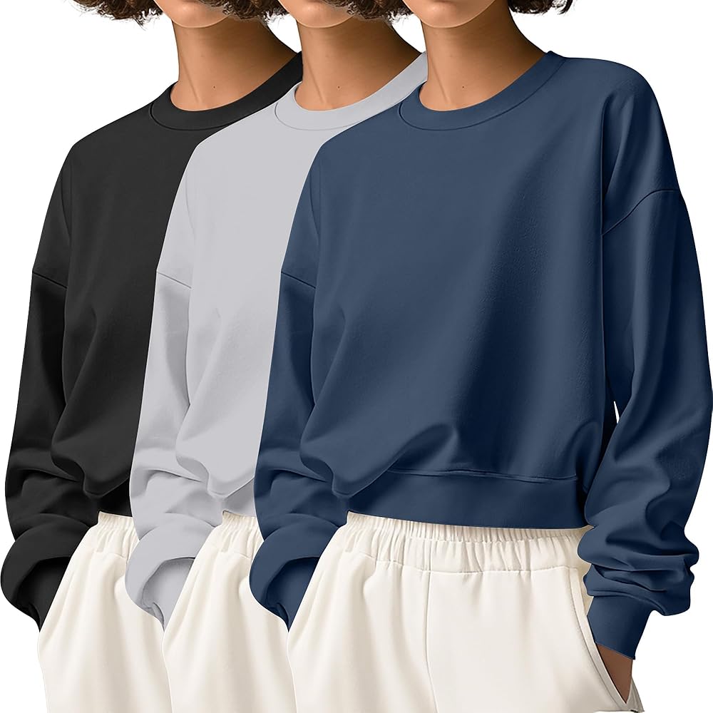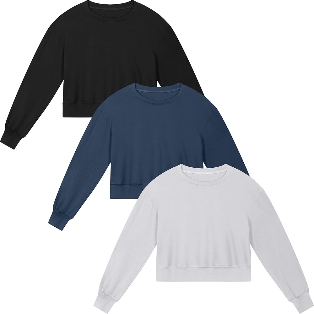 • Package Included: you will get 3 different colors of women's crop sweat shirts, these tops are solid color round neck design, the multipack provides you with a variety of choices to meet your daily dressing needs