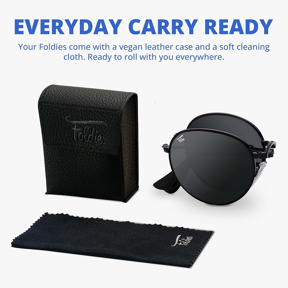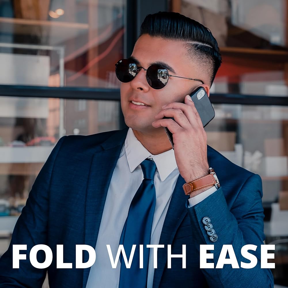 موثوقة ومصقولة - تتميز بإطار قوي وعدسات مضادة للخدش، نظارتنا الشمسية القابلة للطي مثالية للاستخدام اليومي. قم برميها في حقيبتك أو وضعها على مكتبك دون قلق. لمزيد من الحماية، يأتي كل زوج مع حقيبة جلدية أنيقة، مما يضمن بقاء نظارتك الشمسية آمنة.