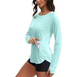 مقاس جذاب: تصميم الخصر المجمع يخلق تأثيرًا تنحيفًا ويبرز منحنياتك، مما يعزز ثقتك بنفسك. بالإضافة إلى ذلك، توفر أطراف الأكمام الممتدة ذات فتحات الإبهام تغطية ممتازة وملاءمة آمنة