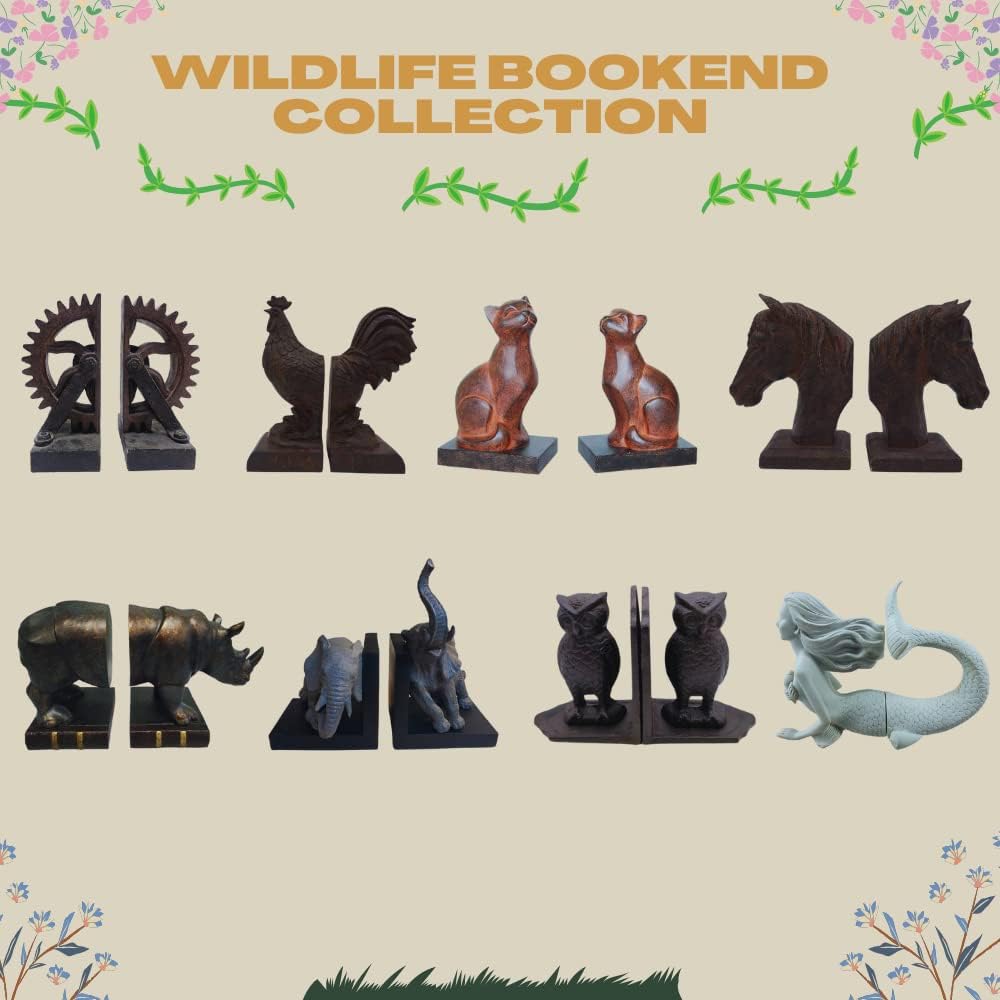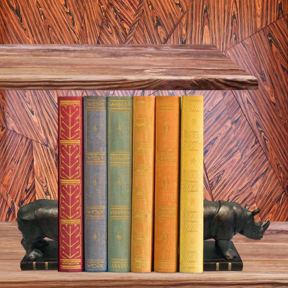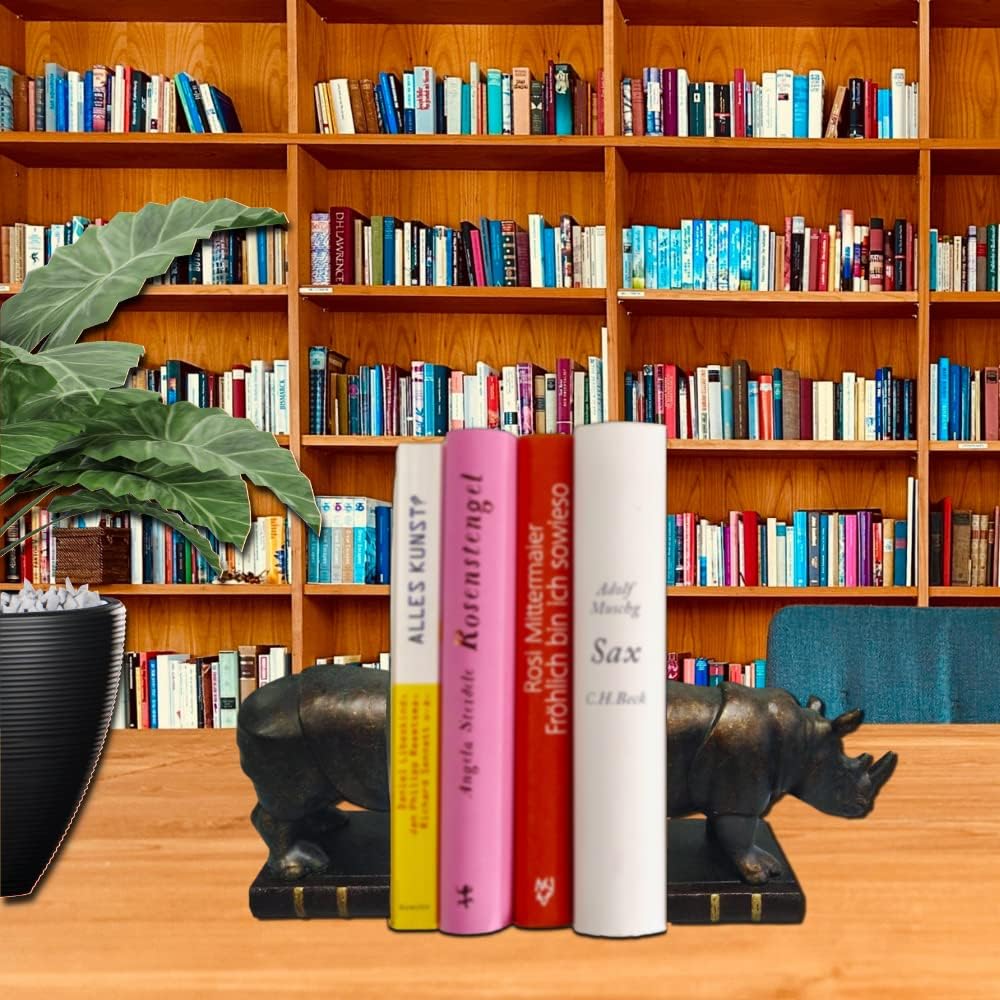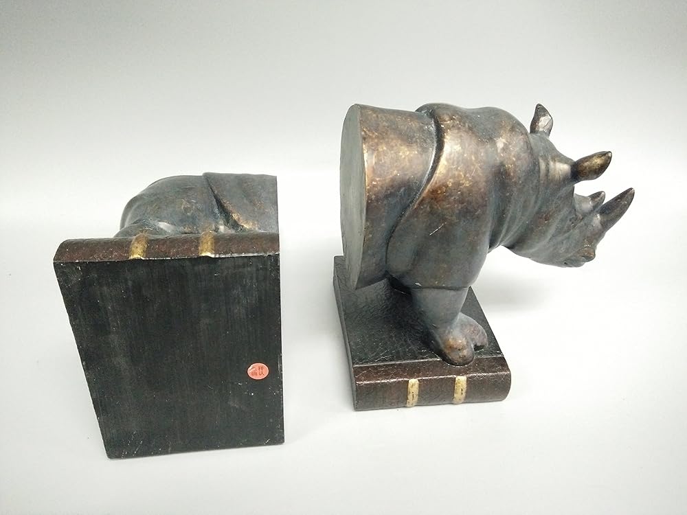 مجموعة مفعمة بالحيوية من نهايات وحيد القرن L/R باللون البرونزي - نهايات غير قابلة للانزلاق تحافظ على الكتب منظمة عموديًا وفي مكانها حتى لا تنقلب الكتب بسهولة - يتم تنفيذ اللون والنمط بمثل هذه التفاصيل - هدية مثالية لمحبي وحيد القرن وهواة جمع نهايات الكتب.