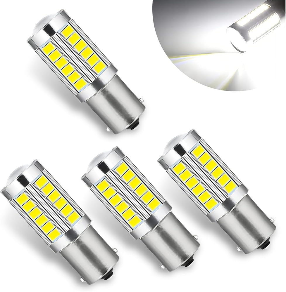 4 قطع 1156 لمبة إشارة الانعطاف LED للسيارات، 5630/5730-33SMD توصيل لوحة الكمبيوتر والتشغيل تركيب غير مدمر، لمبة استجابة سريعة عالية السطوع، استبدال الإضاءة المقاومة للماء (أبيض)