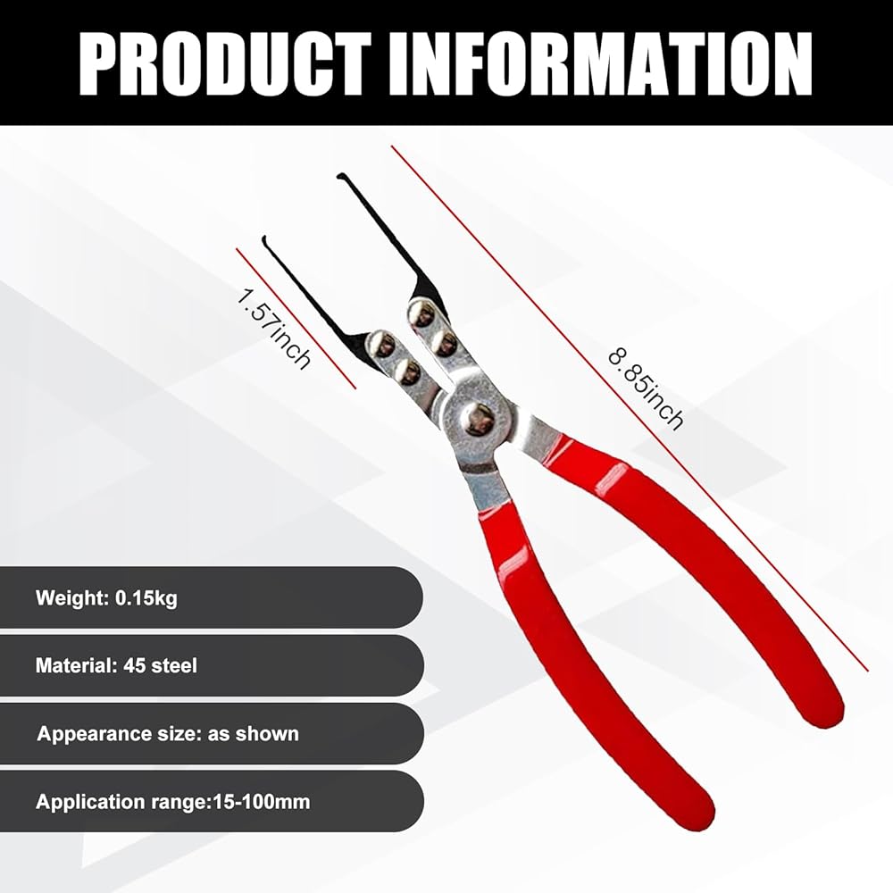 Product List: You will get 1 piece of automotive relay pliers with appearance size of 8.85" x 2.2" x 0.98" and opening range of 15mm-100mm/0.59"-3.93". Before purchasing, please confirm that this product is suitable for your use.