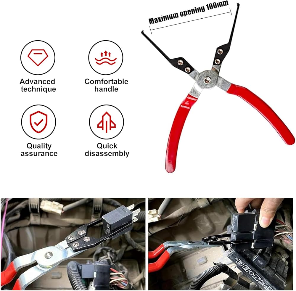 Durable Material: This relay disassembly and disassembly pliers are forged from steel, which is strong and not easy to deform. Easily detaches relays and fuses, making it a must-have tool for professional mechanics and car enthusiasts alike.