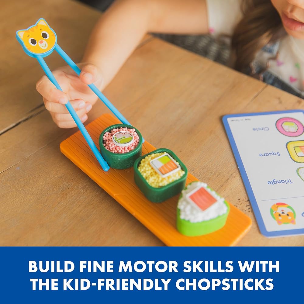 Serve up some sensory, shape-learning play that develops imagination and fine motor skills—essential skills for preschool and kindergarten. Practice shape matching and patterns as kids ages 3 and up recreate ""sushi orders"" in their pretend play sushi shop. Squeezing the Playfoam and chopsticks helps kids develop fine motor skills, which help kids hold pencils, use scissors, tie their shoes, and more! Includes five bricks of Playfoam, two plastic plates, two chopsticks, five double-sided order cards, eight sushi molds, and 13 sushi toppings.