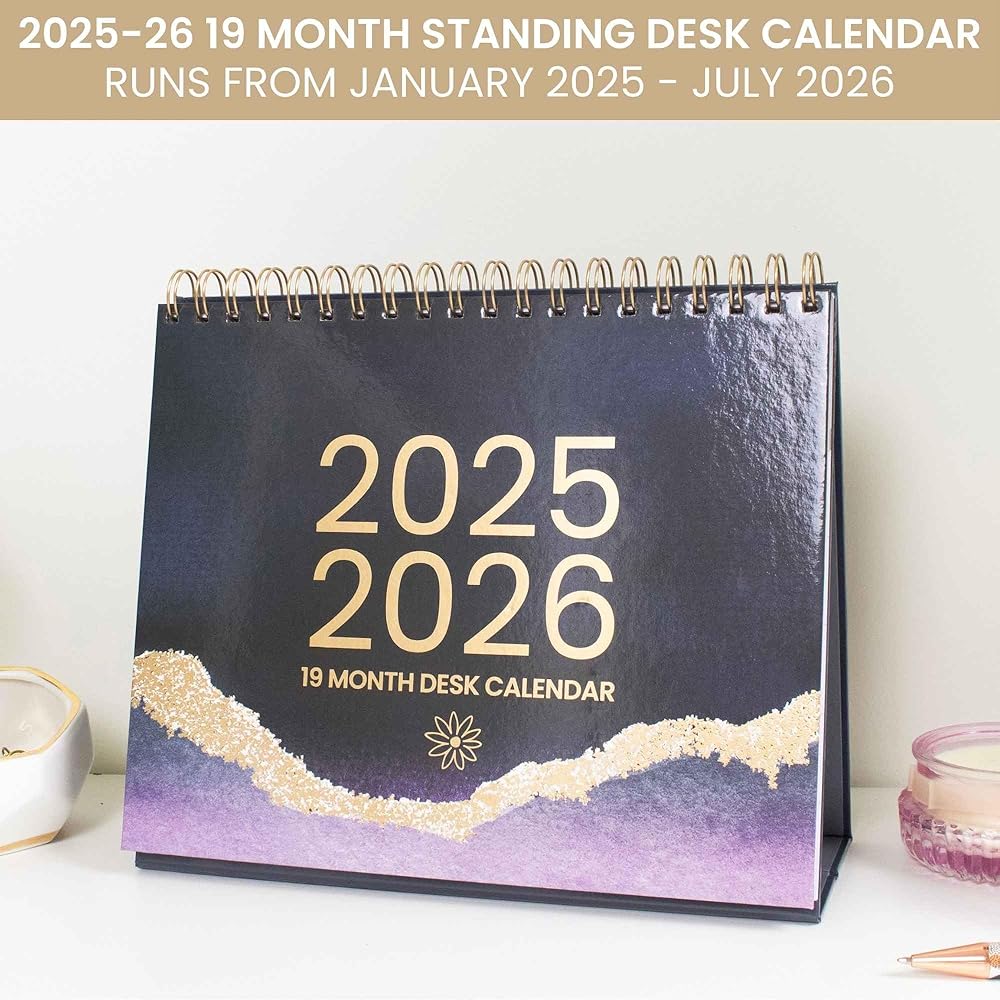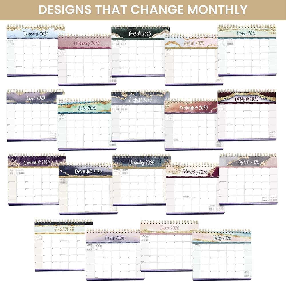 19 شهرًا من التخطيط: يمتد هذا التقويم لمدة 19 شهرًا من يناير 2025 حتى يوليو 2026 ويتميز بإطلالات شهرية واسعة مع عطلات نهاية الأسبوع المظللة، بالإضافة إلى العطلات ووقت توفير ضوء النهار المدمج في التقويم.