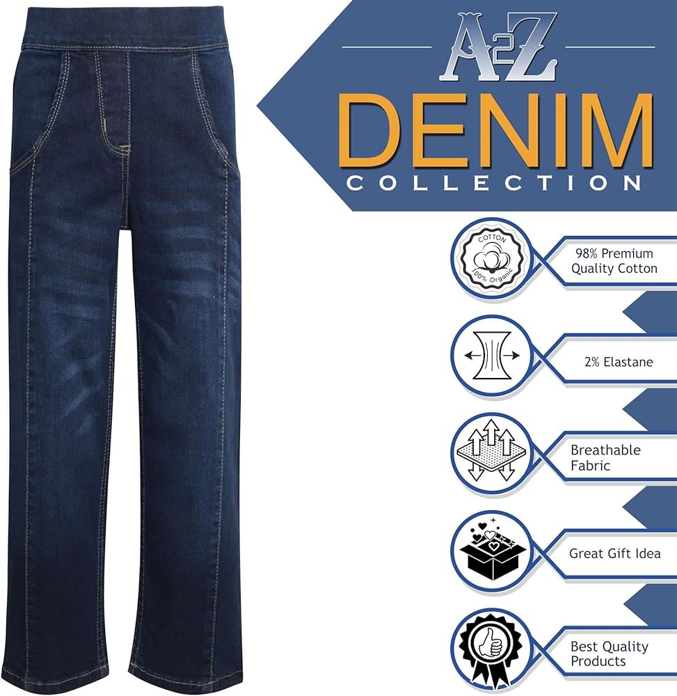 • HIGH-QUALITY DENIM JEANS: The denim is made from the finest cotton available and mixed with elastane to give the wearer the best-feeling denim jeans on the market. We are confident your child will love the comfort thanks to the flexibility of the material as well as being lightweight and breathable. [98% cotton 2% elastane]. These denim jeans are full-length, and they feature two side pockets and two back pockets, as well as adjustable elastic on the inside.