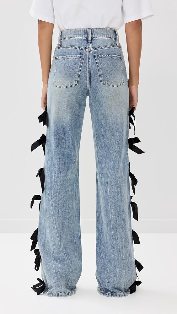 - مقاس مضبوط، مصمم بارتفاع عالٍ، وساق واسعة، وحاشية على شكل بركة. سوف ينعم الدنيم غير القابل للتمدد ويعطي مظهرًا أنيقًا.