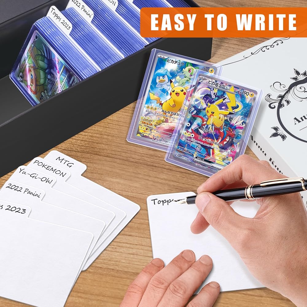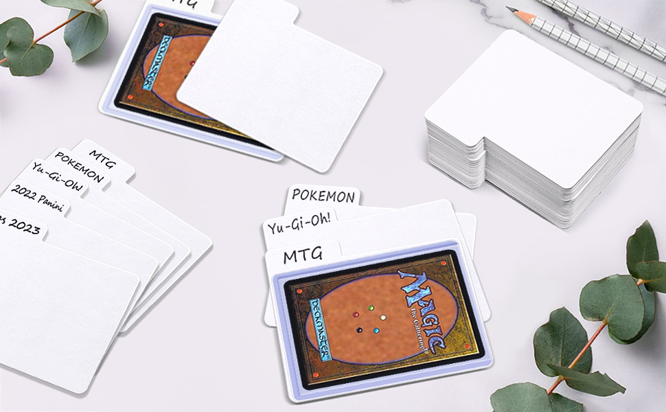 علامة تبويب سهلة الاستخدام للكتابة: يحتوي مقسم البطاقات هذا على علامة تبويب مريحة للكتابة، ويمكن كتابة أي نوع من الأقلام دون عناء. مناسبة للقلم الرصاص والقلم الرصاص وأقلام التحديد وما إلى ذلك. مما يسمح بوضع العلامات الشخصية وتحديد مجموعات أو سمات معينة من بطاقات التداول، مما يسهل التنقل البديهي داخل مجموعتك.