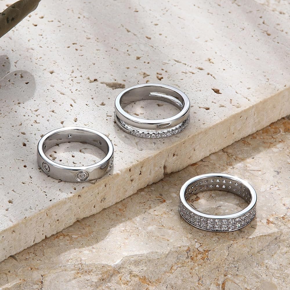 مواد عالية الجودة: مصنوعة من النحاس المتين عالي الجودة ومزينة بالزركونيا المكعبة، وتتميز بكونها سميكة وقوية ومقاومة للتآكل والتشويه؛ تصميم قابل للتكديس يسمح بالعديد من التركيبات الأنيقة، تستحق التجربة