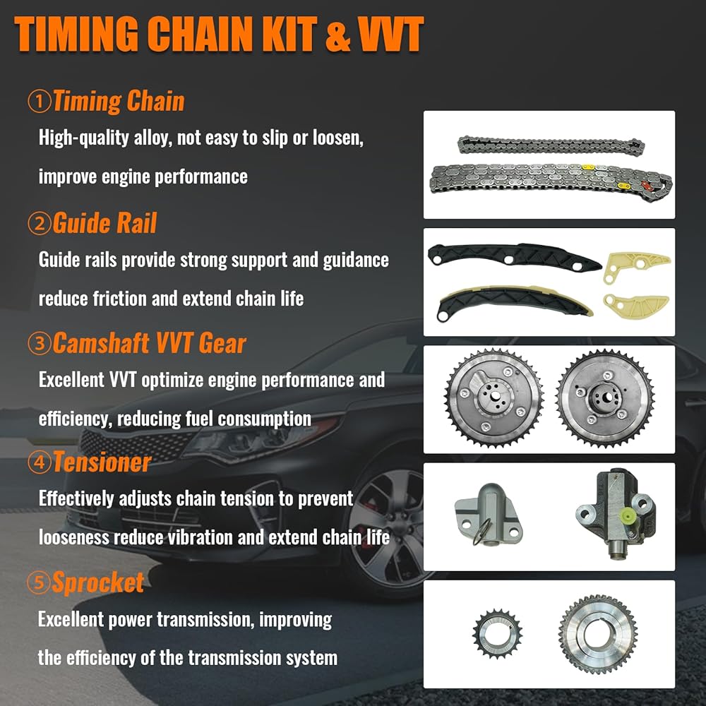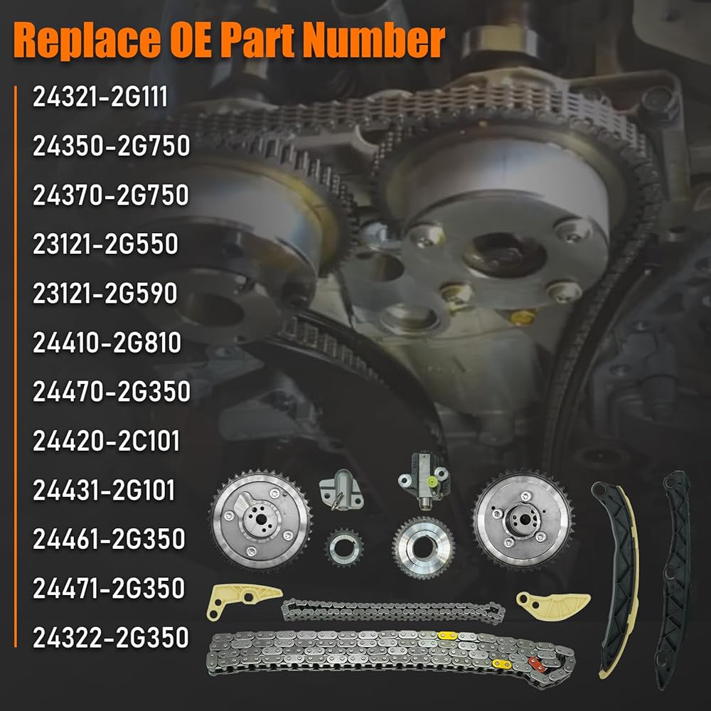 24321-2G111 مجموعة سلسلة التوقيت لـ 2011-2018 Kia Optima Sportage Sorento 2.0L 2.4L لـ 2011-2019 Hyundai Santa Fe Sport Sonata Tucson 2.0 2.4 سلسلة توقيت مع ضرس VVT 24350-2G750 24370-2G750