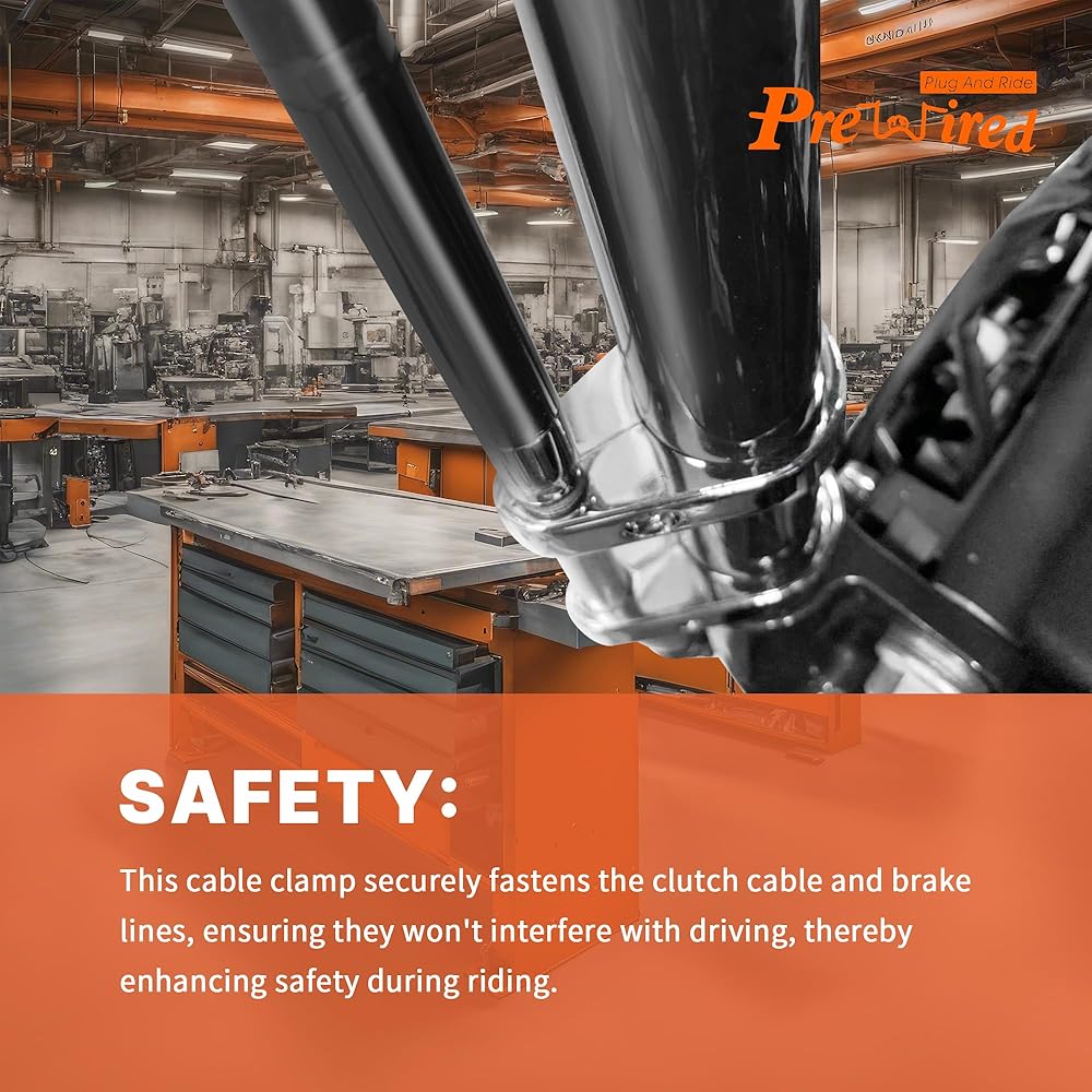 كابلات التثبيت والحماية: مشبك كابل القابض يحمل كابل القابض وخط الفرامل في مكانه بشكل آمن، مما يمنع ارتخاء الكابل. وهذا يساعد على حماية الكابلات من التآكل، وبالتالي إطالة عمرها الافتراضي.