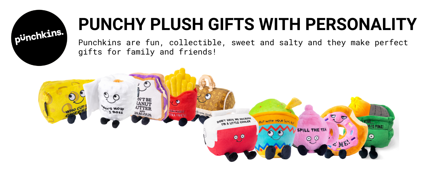 مجموعة PUNCHKIN هذه الهدايا الفاخرة محشوة بالشخصية. كل تصميم مبتكر مصنوع من قماش فائق النعومة مع تفاصيل مطرزة وخط مزخرف فكاهي. من اللطيف والمحبوب إلى الذكي والوقح، من المؤكد أن يكون Punchkin المثالي في أي مناسبة.