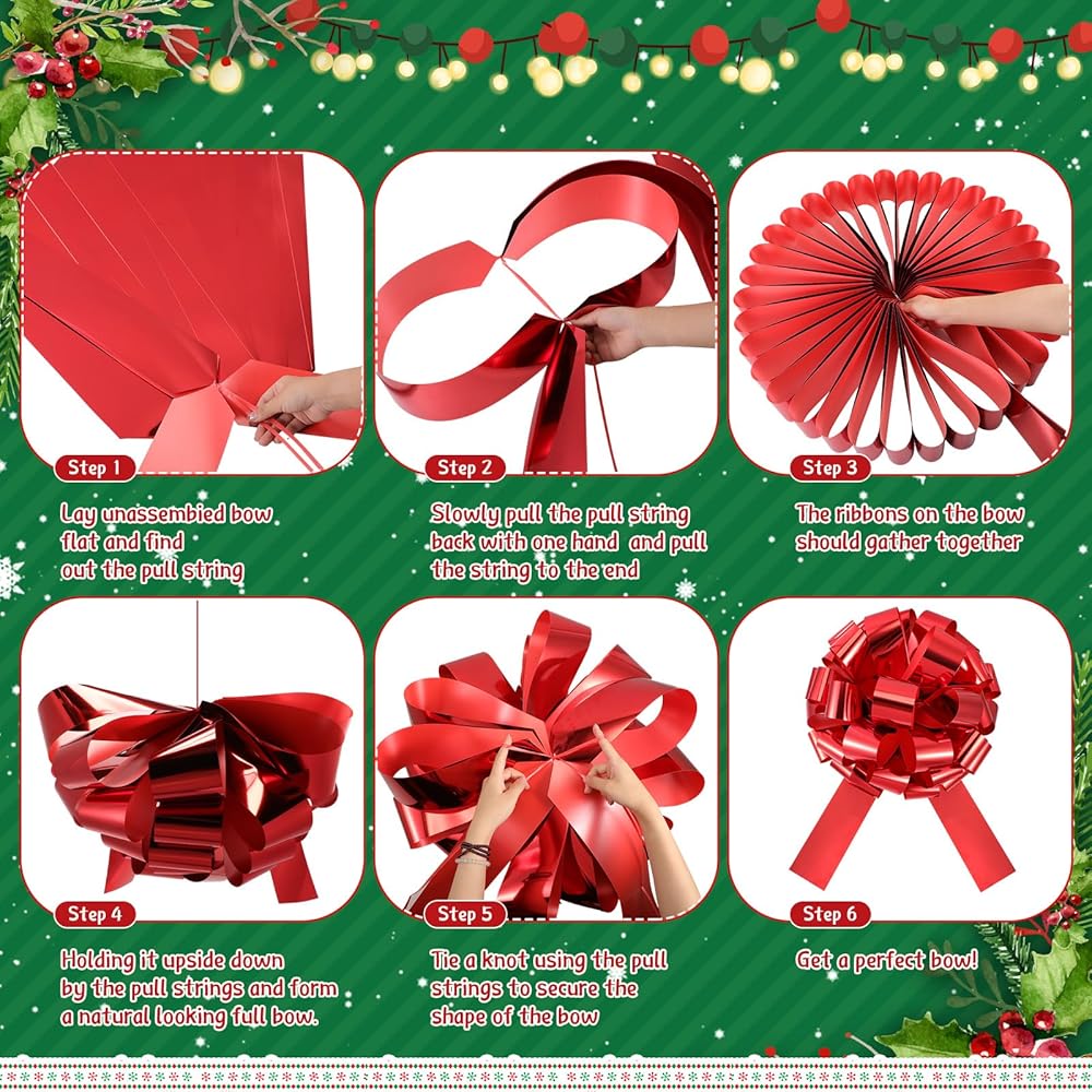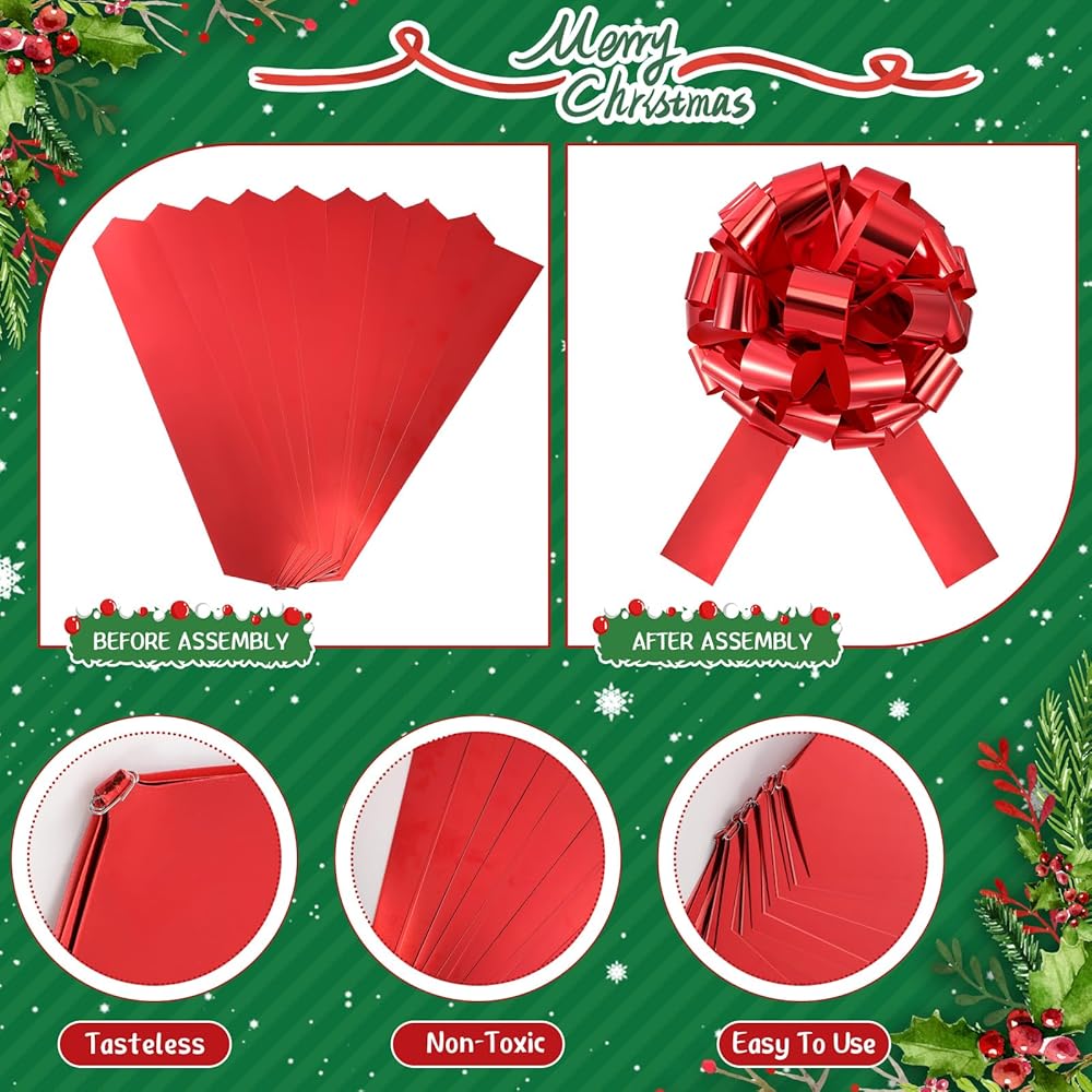 Exquisite Color: experience the vibrant brightness of our large bow for car with its eye catching bright red color; Crafted with precision, the color is designed to draw everyone's attention; The rich red tone signifies celebration and joy, making it ideal not just for Christmas gifts but also for birthdays, anniversaries, or any momentous occasion