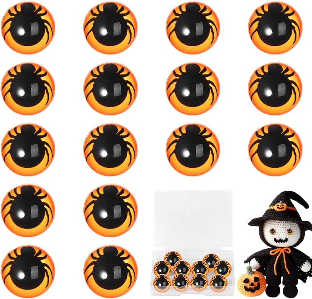 تصميم عنكبوت معقد؛ تم تصميم عيون الحيوانات المحشوة على شكل عنكبوت للكروشيه بشكل معقد لتشبه العناكب المخيفة والجذابة، مع تفاصيل معقدة مثل ثمانية أرجل وعيون غريبة. يضيف هذا التصميم الفريد لمسة من الرعب والشخصية إلى الدمى أو الإبداعات المصنوعة يدويًا، وهو مثالي للهالوين أو المشروعات الأخرى ذات الطابع الشخصي.
