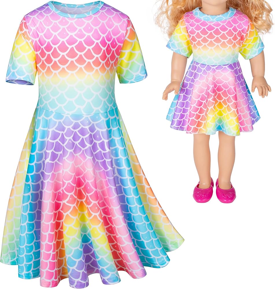 Matching doll and girl mermaid clothes costume,girls mermaid nightdress Sleepwear dress,girl mermaid playwear dress,girls mermaid pajamas,fit 18" mermaid american girl doll clothes for doll and me matching clothes outfits.