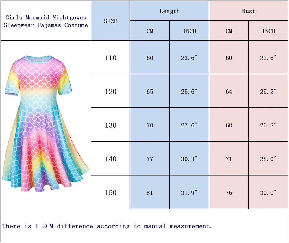 Girls mermaid nightgowns sleepwear nightdress pajamas dress costume size Information: