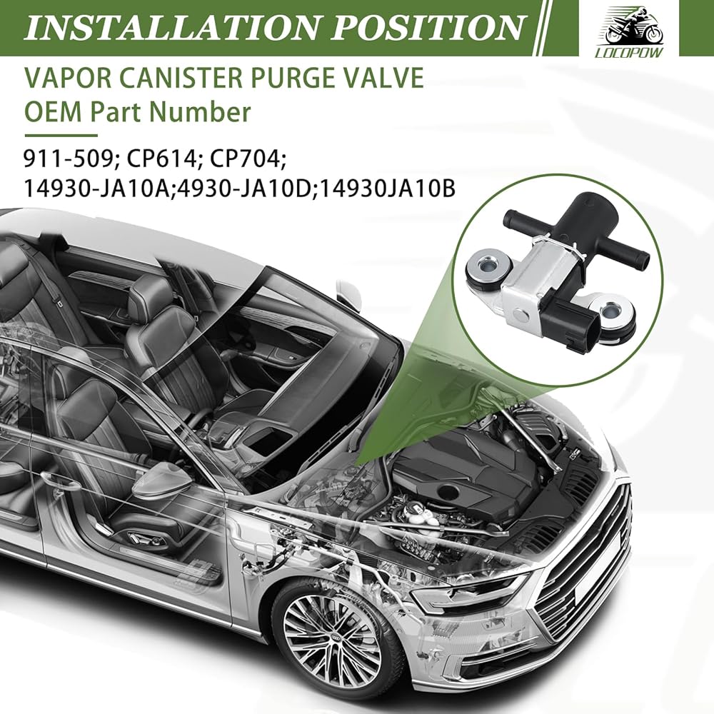 LOCOPOW 911-509 علبة بخار تطهير صمام الملف اللولبي مناسب لنيسان ألتيما 2007-2017 GT-R 2009-2021 ماكسيما مورانو NP300 باثفايندر كويست روج سنترا لإنفينيتي FX50 JX35 QX60 QX70 14930-JA10A