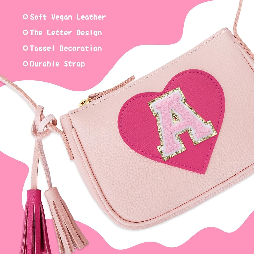 • Personalized Initial Letter Purse for Girls: Make a statement with this one-of-a-kind personalized purse! Combining fashion with practicality, this unique purse is designed to accompany girls on every adventure. Crafted with vegan leather, adorable heart embellishments, and carefully sewn initial letters, it's as special as she is. Perfect for any occasion, this purse will make her the center of attention, adding a touch of sparkle to every outing