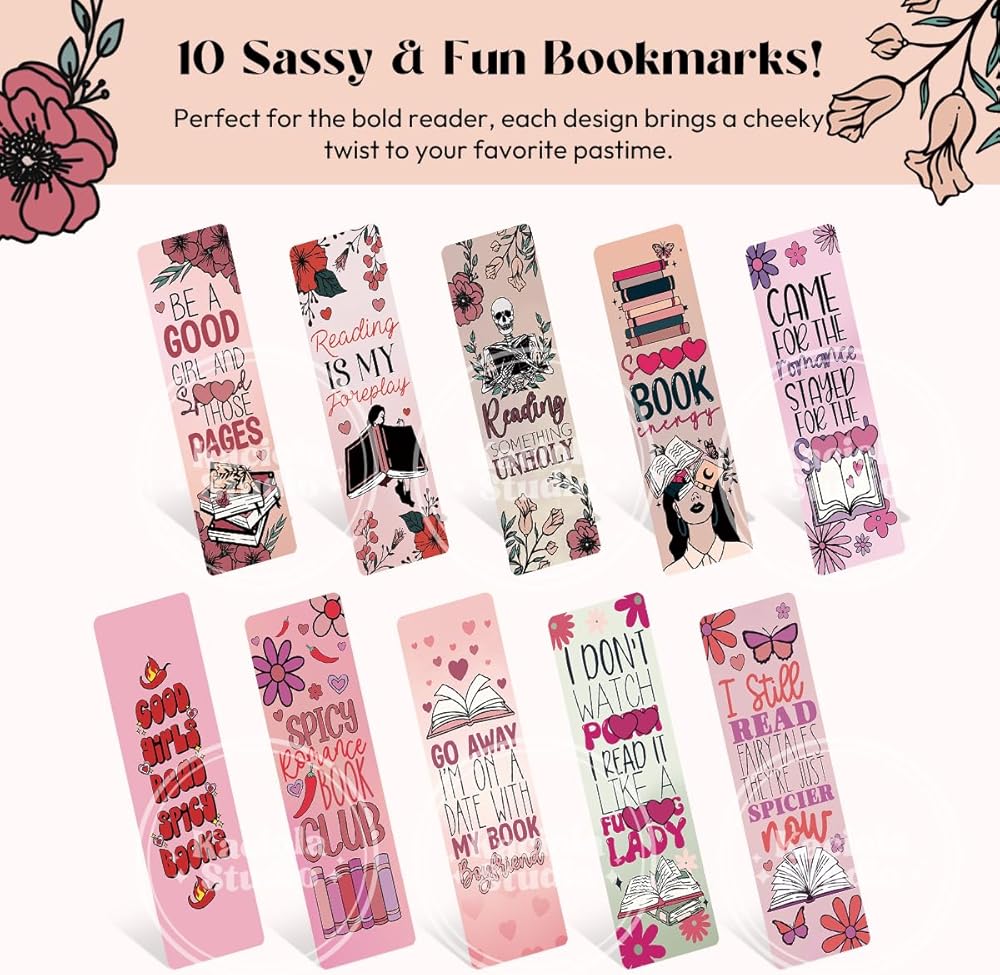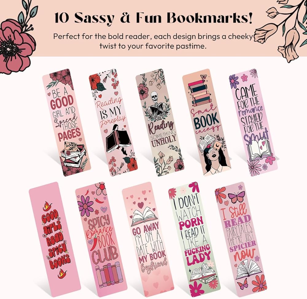 Funny Bookmarks Package Includes: The package includes 10 pack funny spicy bookmarks each one with a tassel attched, different styles of bookmarks with different color tassels. Each bookmark measures about 6 x 2 inches, which is light and easy to carry and store