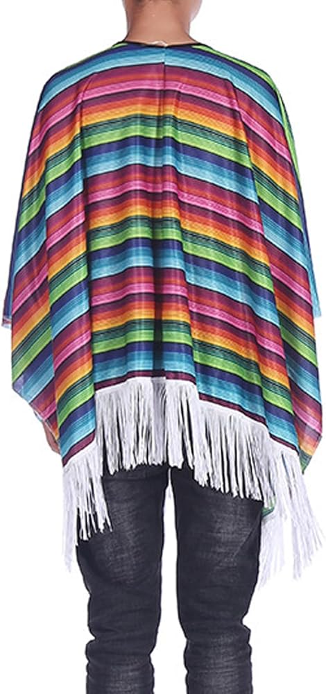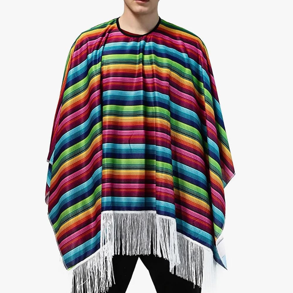 You are the focus of the party : Our Mexican serape poncho costume is lovely, containing classic Mexican poncho and sombrero with rainbow edge and band, full of happy fiesta atmosphere,very fit for Cinco De Mayo, Mexican fiesta and other themed party with Mexican elements; These accessories can make you stand out from the crowd, and you can wear them for a number of other parties and occasions as well.