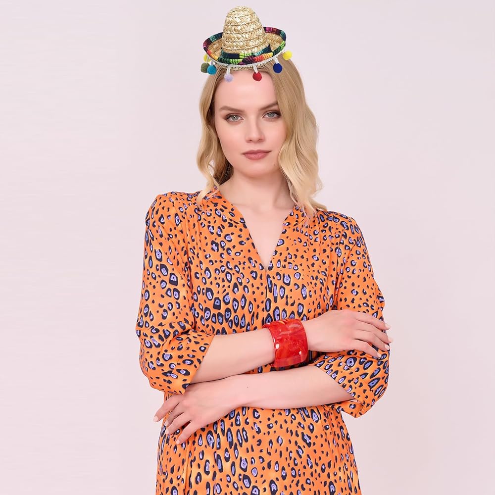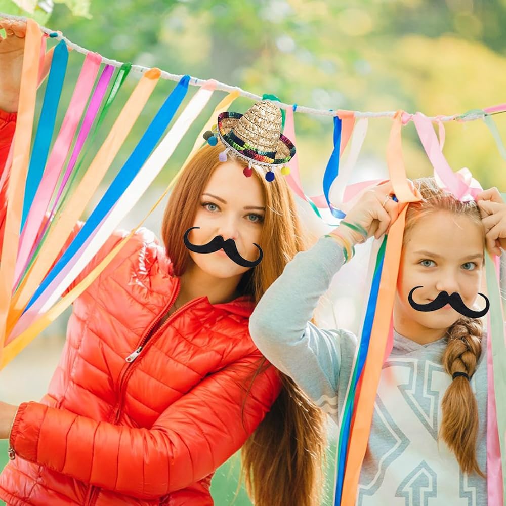 Vibrant Multicolor Design : cinco de mayo party cape with a stylish center neckline.These Sombrero party hats with a black elastic headband, straw hats with red ball tassels and colorful patterns, the hats are small and cute, suitable for most people to wear, easy and comfortable to provide you with a long and pleasant use experience.
