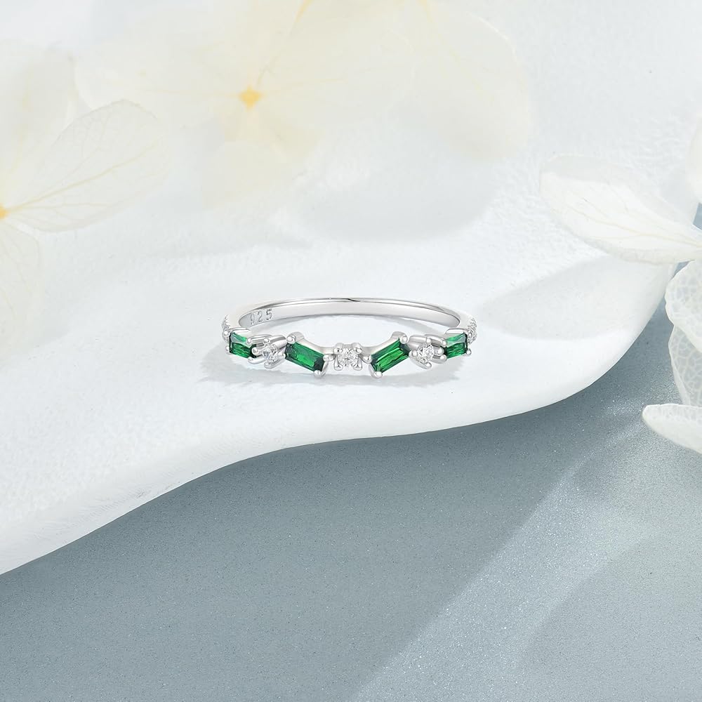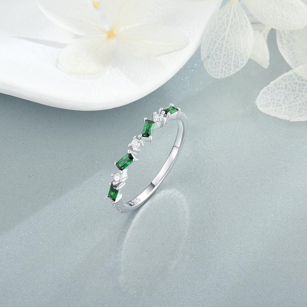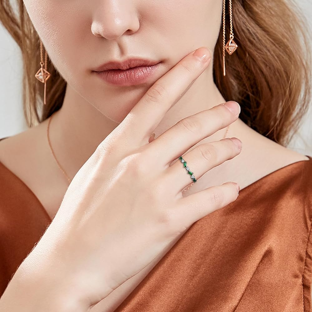 حجم الخاتم - عرض حلقات الأبدية القابلة للتكديس هو 0.06 بوصة (1.5 مم) والوزن 1.3 جرام، مجموعة مكونة من 11 قطعة مستديرة من الزركونيا المكعبة 3A و4 قطع 1.5*3 مم مستطيلة رائعة القطع 3A من الزمرد.