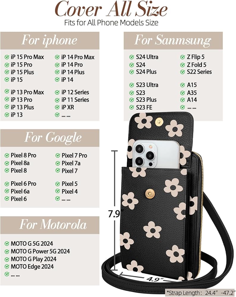 حزام قابل للتعديل - تحتوي محفظة الهاتف الخلوي هذه على حزام كتف قابل للتعديل يصل إلى 24.4-47.2 بوصة ومصنوع من طبقتين من الجلد من أجل المتانة ولتلبية احتياجاتك أثناء السفر أو اليومية.
