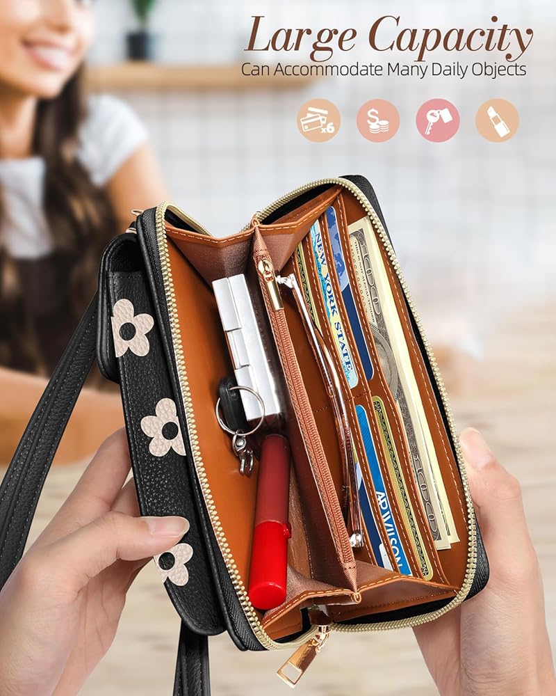 تصميم واسع - تم تصميم هذه المحفظة الصغيرة التي تمر بالجسم خصيصًا مع مقصورتين داخليتين، وجيب داخلي متوسط بسحاب، و4 فتحات للبطاقات. من السهل تخزين أحمر الشفاه والعملات المعدنية والبطاقات والمفاتيح والمزيد.