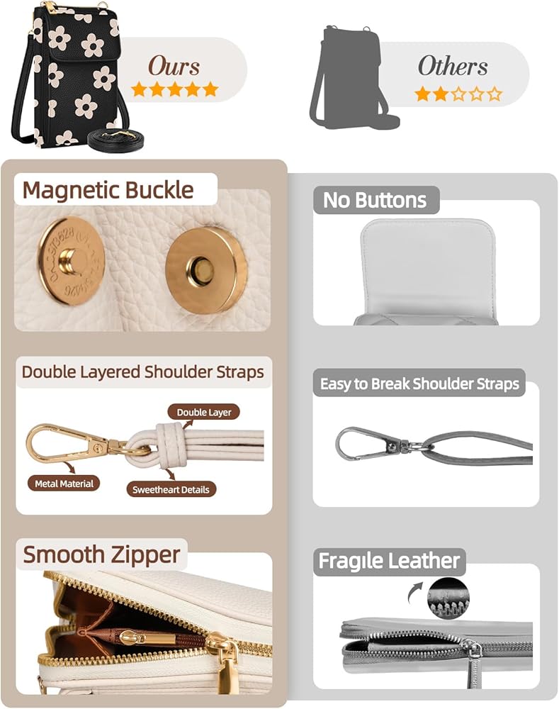 جيب كبير للهاتف الخلوي - تم تصميم حقائب اليد الصغيرة للنساء بجيب كبير للهاتف الخلوي يناسب جميع موديلات الهواتف الخلوية، بحجم يصل إلى 7.9 بوصة فقط. ويأتي مع إغلاق مغناطيسي لتنظيم هاتفك، آمن وسهل!
