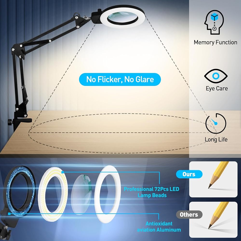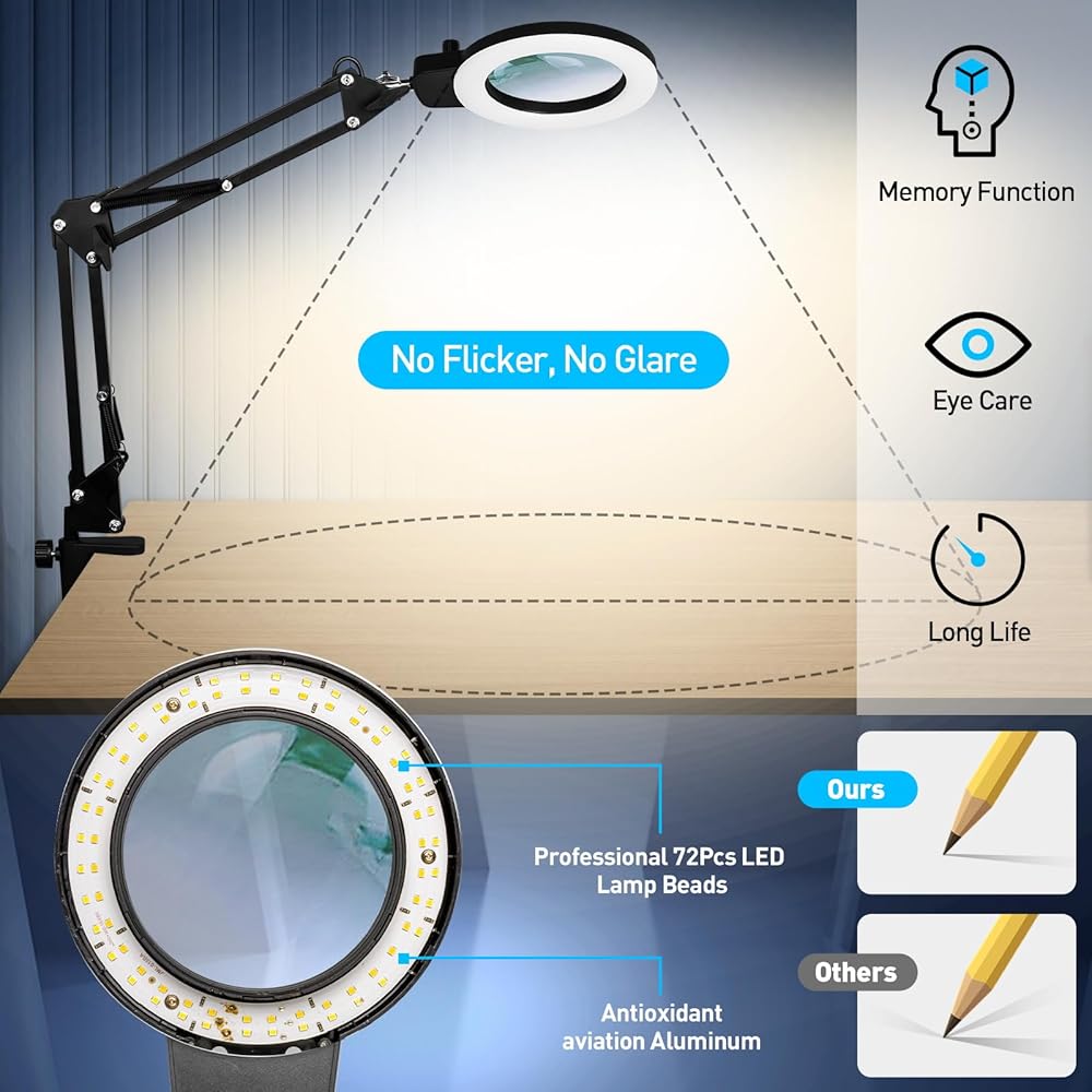 • أحدث حل لإمداد الطاقة: يستخدم الزجاج المكبر بالضوء نظام تعديل المقبض المزدوج، على عكس المفاتيح التقليدية، مما يتسبب في سقوط حامل المصباح. قم بتشغيل المفتاح، يمكن للمقبض الموجود على اليسار ضبط أي سطوع تريده، ويمكن للمقبض الموجود على اليمين ضبط أي درجة حرارة لون تريدها، لذلك يمكن لمصباح العدسة المكبرة الخاص بنا ضبط مجموعة الألوان والسطوع الأكثر ملاءمة لك. مناسبة لأي من المشاهد المفضلة لديك.