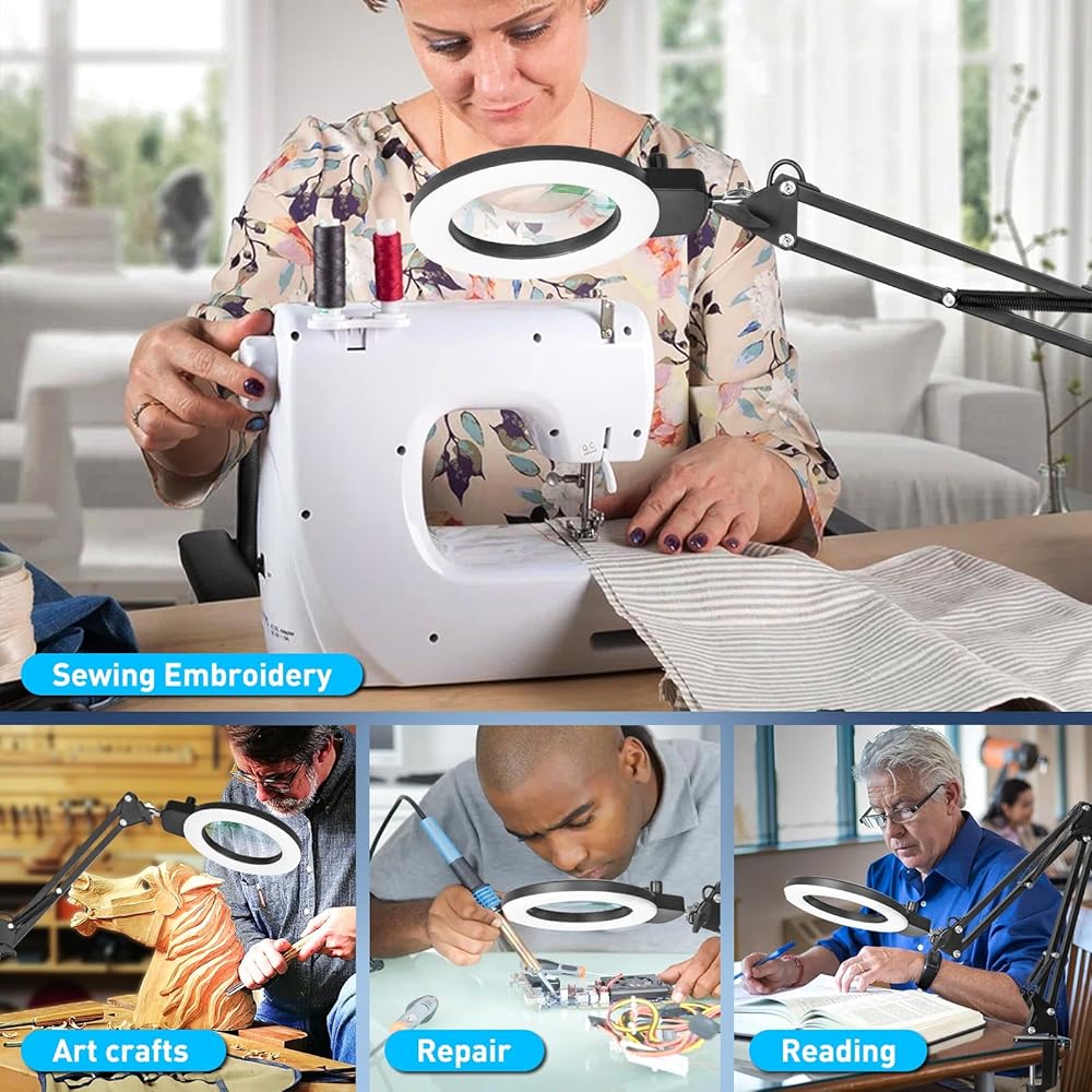 • ذراع متأرجح قابل للتعديل ومشبك معدني: حرر يديك واستمتع بالضوء المكبر الخاص بنا مع ذراع متأرجح مريح. تم تصميم الأذرع المتأرجحة بأربعة نوابض قوية و3 عقد لتوفير دعم قوي. بالإضافة إلى ذلك، يمكن تثبيت المشبك المعدني الثقيل على حافة الطاولة بحد أقصى 2.1 سم، الجوانب العلوية والسفلية للمشبك مجهزة بوسادات إسفنجية، والتي تمنع خدش طاولتك تمامًا وتزيد من ثباتها. المقطع. اختر الطريقة الصحيحة لاستخدام مكتبك المكبر ومصباح المشبك حسب الرغبة.