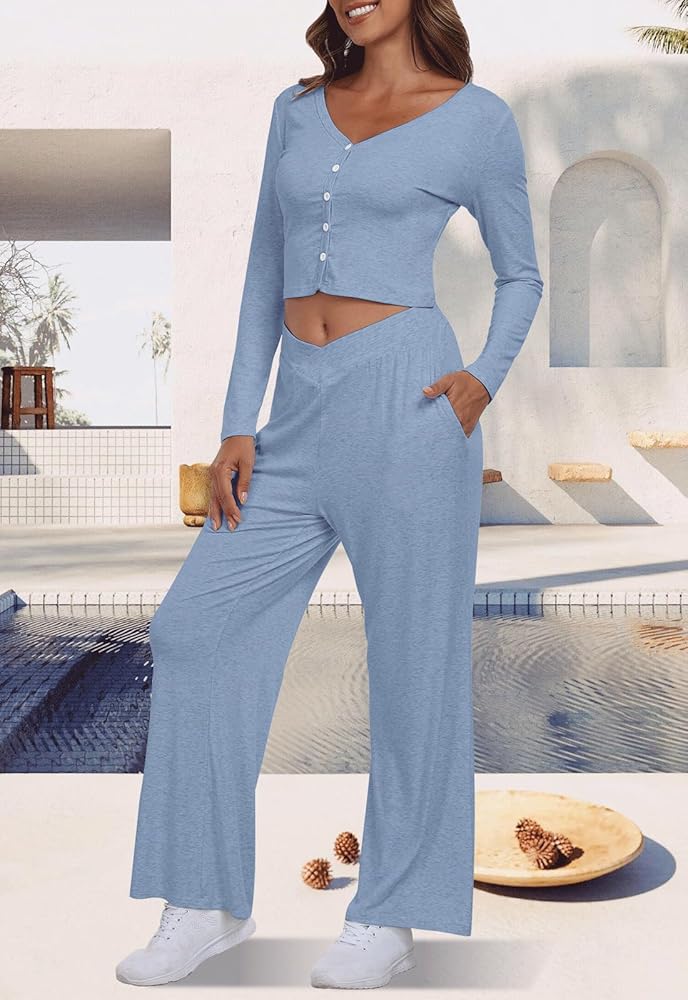 المطابقة: طقم مكون من قطعتين للنساء يمكن ارتداؤه مع السترة أو السترة الخاصة بك، وهو مثالي للارتداء مع الشباشب المسطحة. إلى جانب ذلك، يمكنك ارتداء واحدة منها بمفردها لتتوافق مع ملابس خزانة ملابسك مثل التنانير أو الجينز أو البلوزات أو السترات أو الملابس الأخرى.