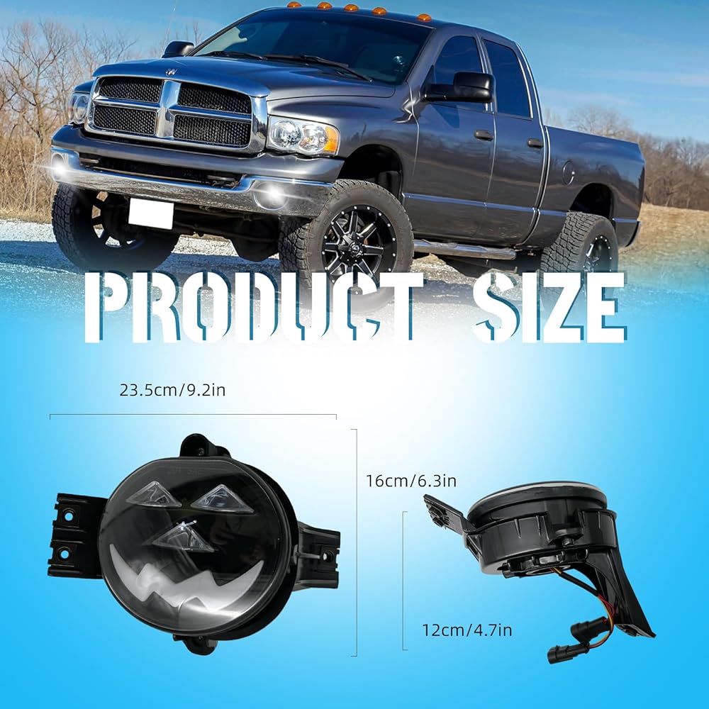 • COMPATIBLE: Fog lights replacement for 2002-2008 dodge ram 1500, 2003-2009 dodge ram 2500 3500, 2004 dodge durango 2nd generation, 2005-2006 dodge durango