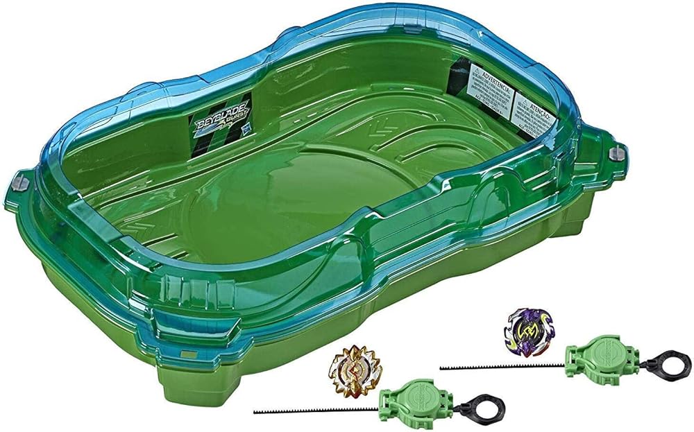 Ride the rails with Beyblade Burst slingshock Tech! Cross collision BEYSTADIUM features a quadruple rail system that propels tops through the rails and into the battle ring for intense head-to-head clashes. Bladders can keep the performance tips in battle ring mode to defend their position in the stadium, or convert them to slingshot mode to ride the rails and rush into battle. Scan code on Beyblade Burst slingshock tops' energy layers and cross collision Stadium to unleash each in the Beyblade Burst app. Let it rip! beyblade Burst toys are for 8 year old boys and girls and up. Battle set makes a great gift for fans of the anime series and kids who want to level up on their journey toward Beyblade mastery.