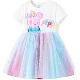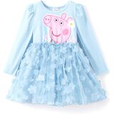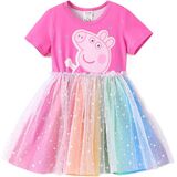 تصميم فريد: فستان الفتاة هذا وردي وأكمام طويلة. الجزء العلوي مطبوع عليه بيبا بيج، التي ترتدي تاجًا صغيرًا على رأسها، مما يجعلها تبدو لطيفة جدًا. الجزء السفلي من الفستان مصنوع من التول الشفاف ومزين بزخارف النجوم البراقة. التصميم العام حالم جدًا ومناسب بشكل خاص لحفلات أعياد الميلاد أو المناسبات الخاصة.