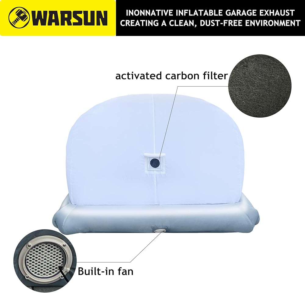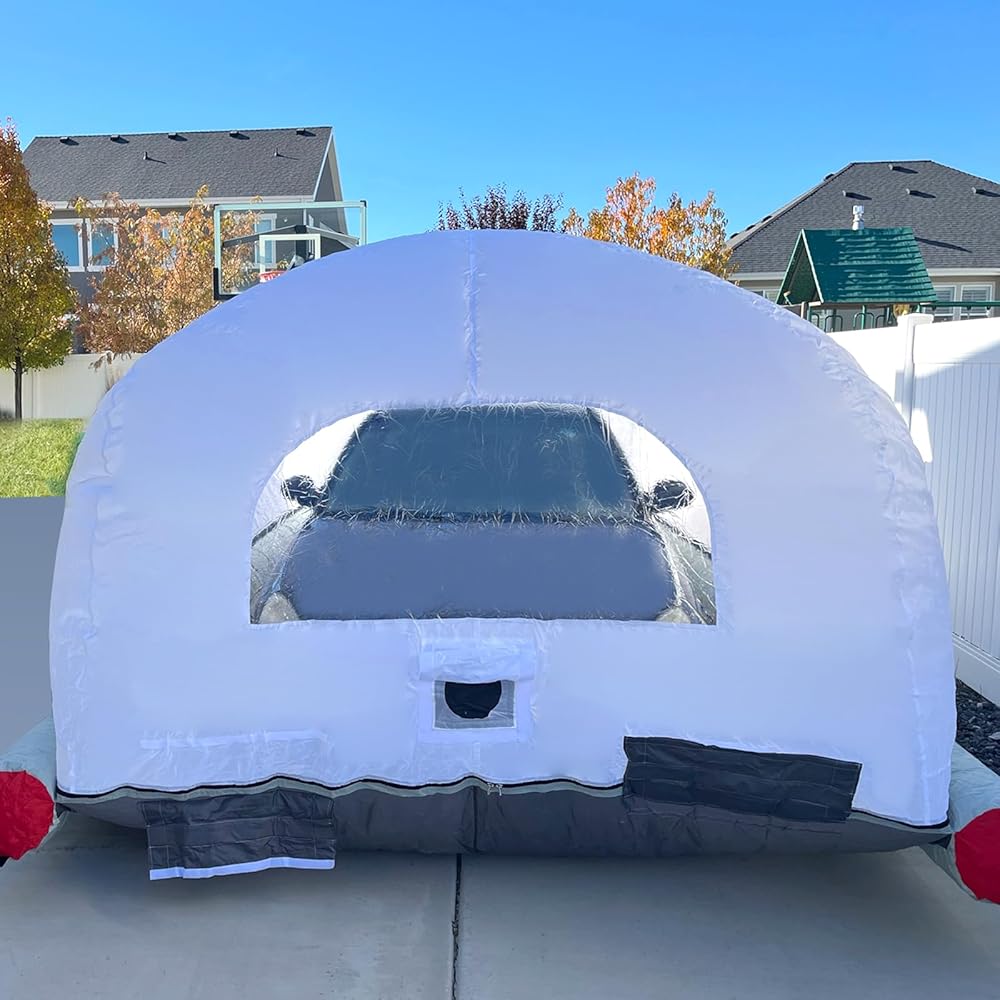 【تصميم احترافي】يتميز كشك غطاء السيارة الداخلي هذا بوظائف مريحة للقيادة والخروج. تم وضع علامة على خط الانتظار في الجزء السفلي من مرآب السيارات القابل للنفخ، وهو سهل الاستخدام ومريح. أضف وسادتين واقيتين على جانبي الجزء السفلي من باب الدخول - لمنع ضغط العجلة من إتلاف السحاب!